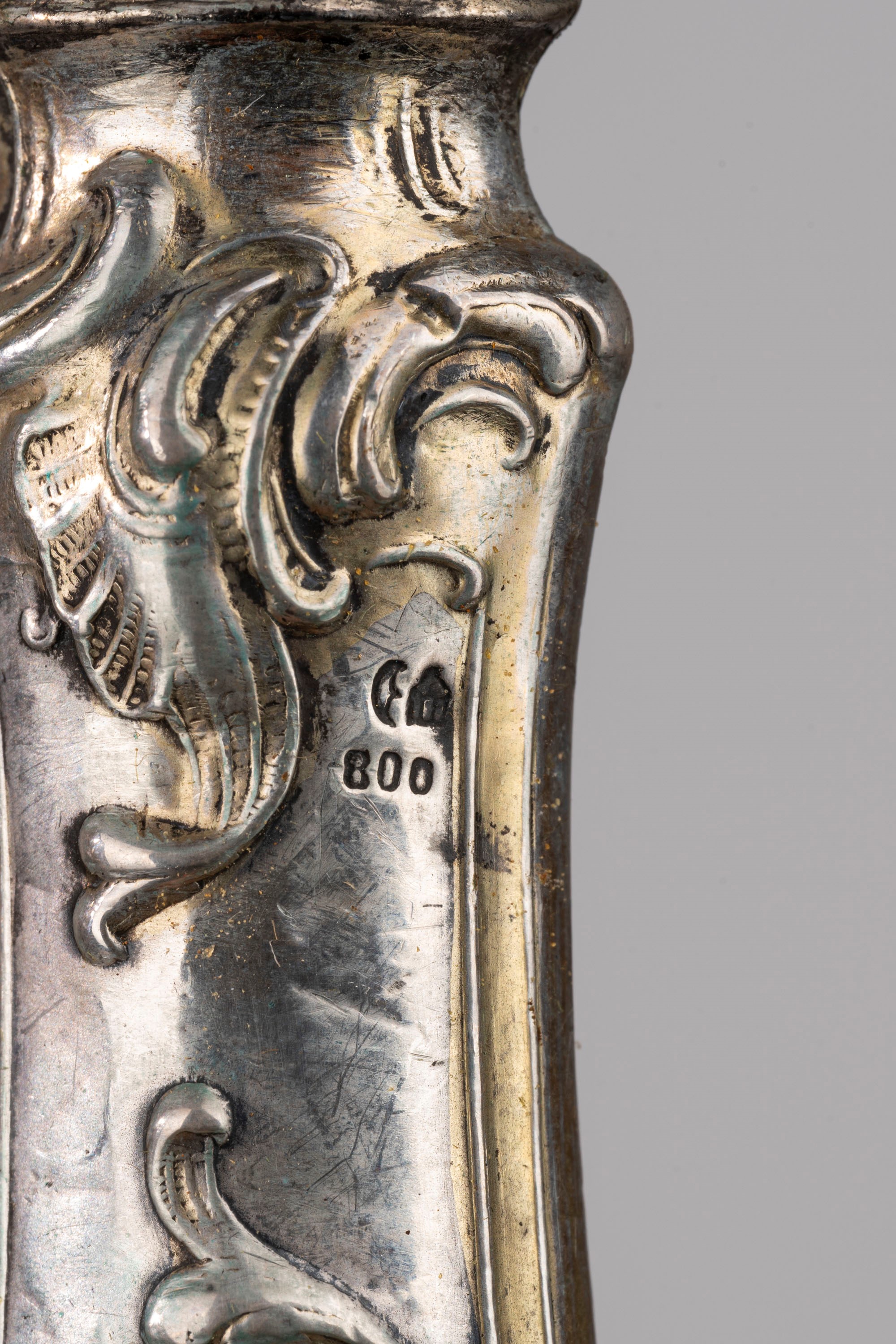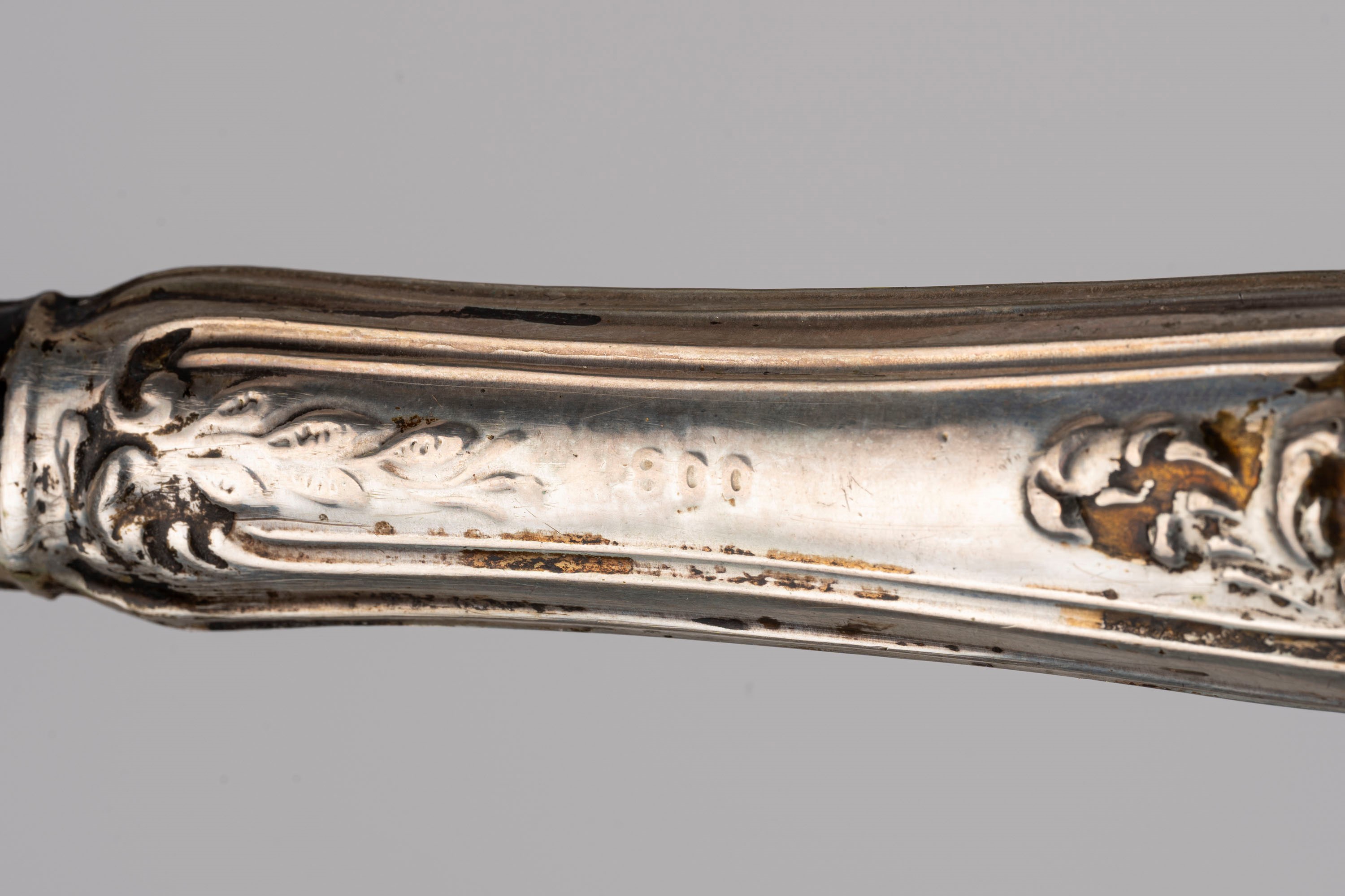 in argento e vermeilcomposto da 26 pezzi: nove serviti, sette forchettine, dieci coltelli.