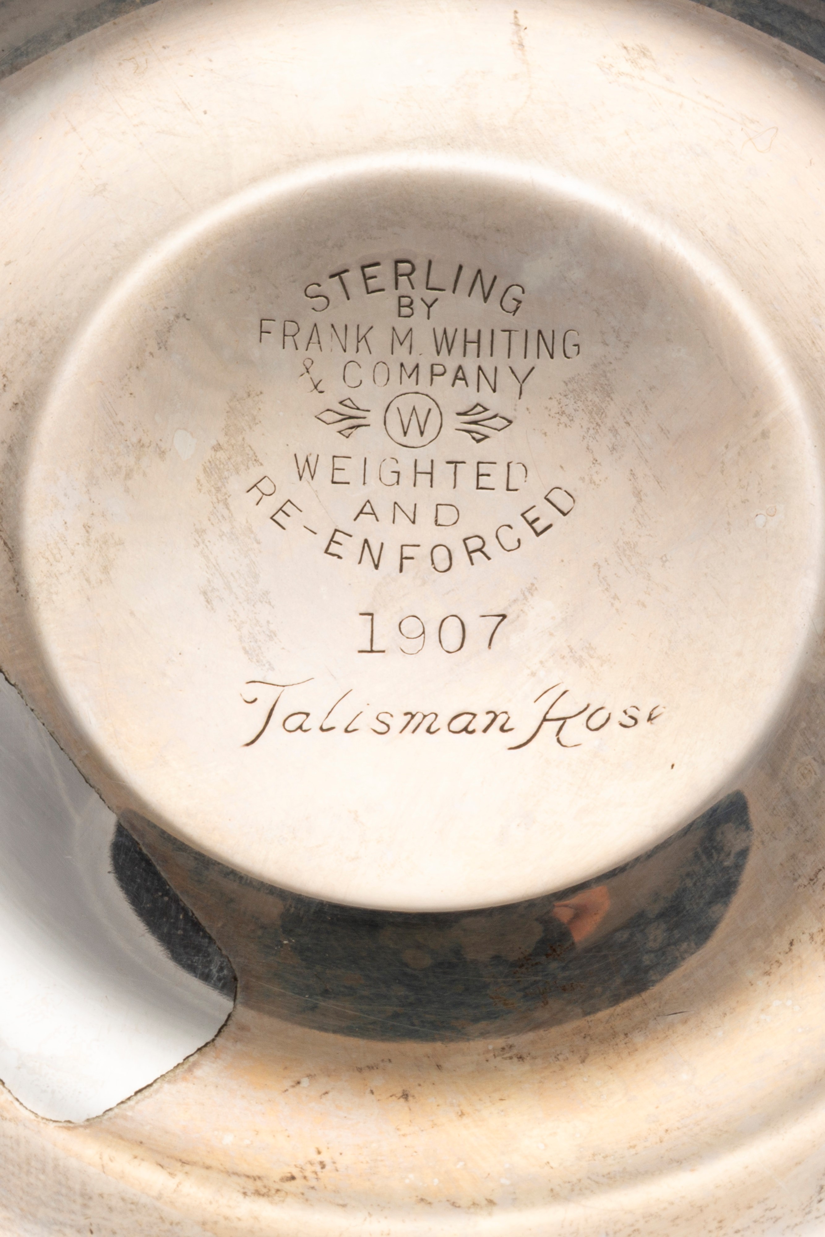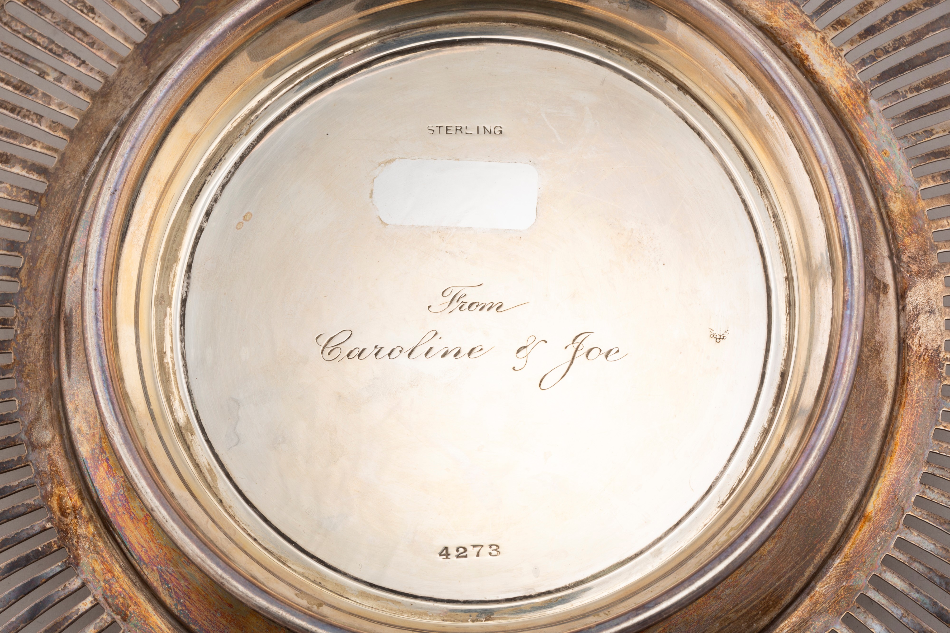 in argento 925composto coppia di candelieri (h cm 25,30, interno rinforzato), un'alzatina reticolata, monogrammata e con data celebrativa 1890-1915 (d cm 27,30) e un vaso monogrammato P.C.C 1951 (interno rinforzato, h cm 17,90).