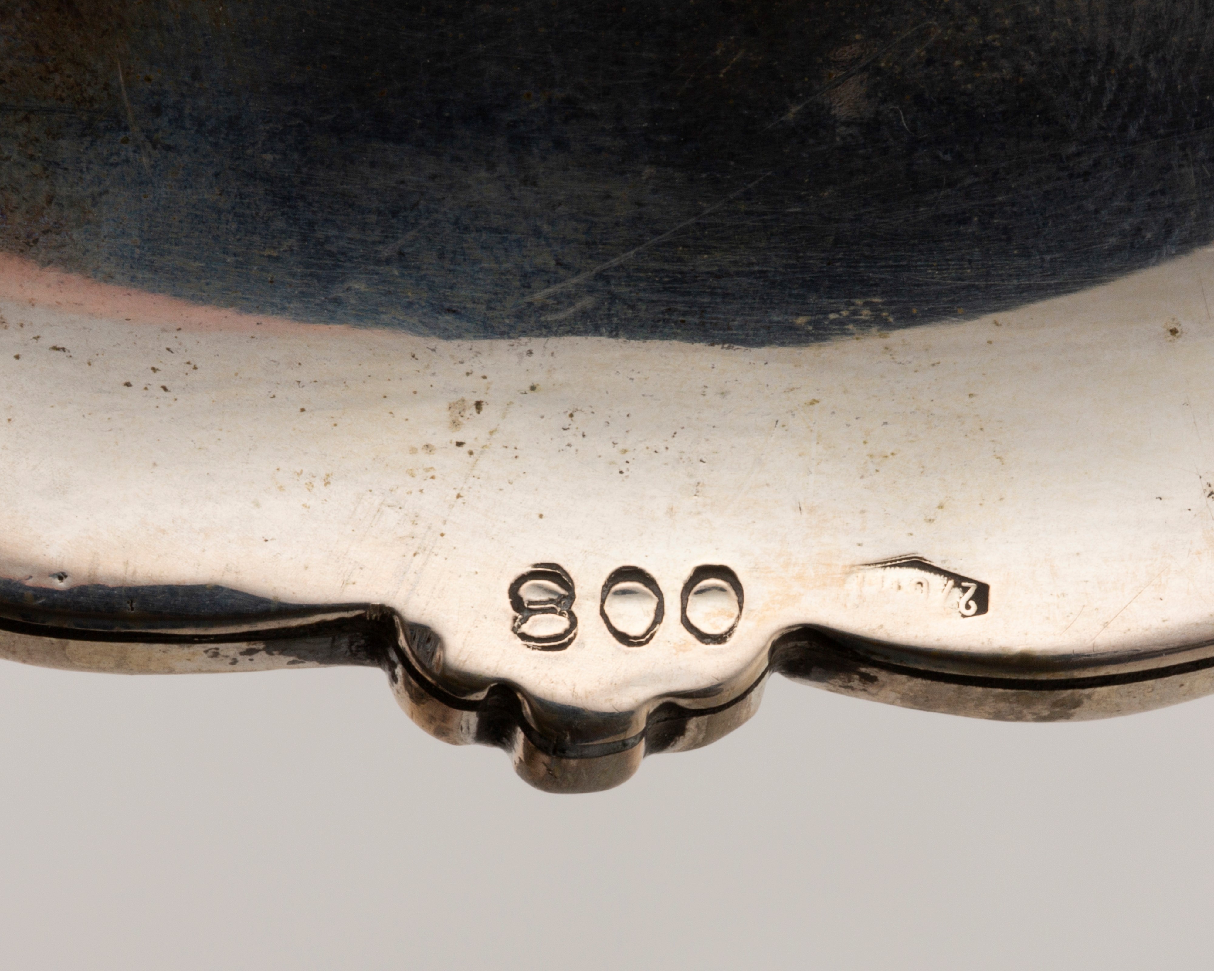 in argentocomposto da un piatto con bordo sbalzato e tesa incisa a motivi floreali (d cm 27,20), una salsiera biansata con bordo a palmette (l cm 33,30), e due alzatine, una bacellata di forma circolare (d cm 25,20) e l'altra polilobata con anse cesellate e quattro piedini ferini (l cm 27,40).