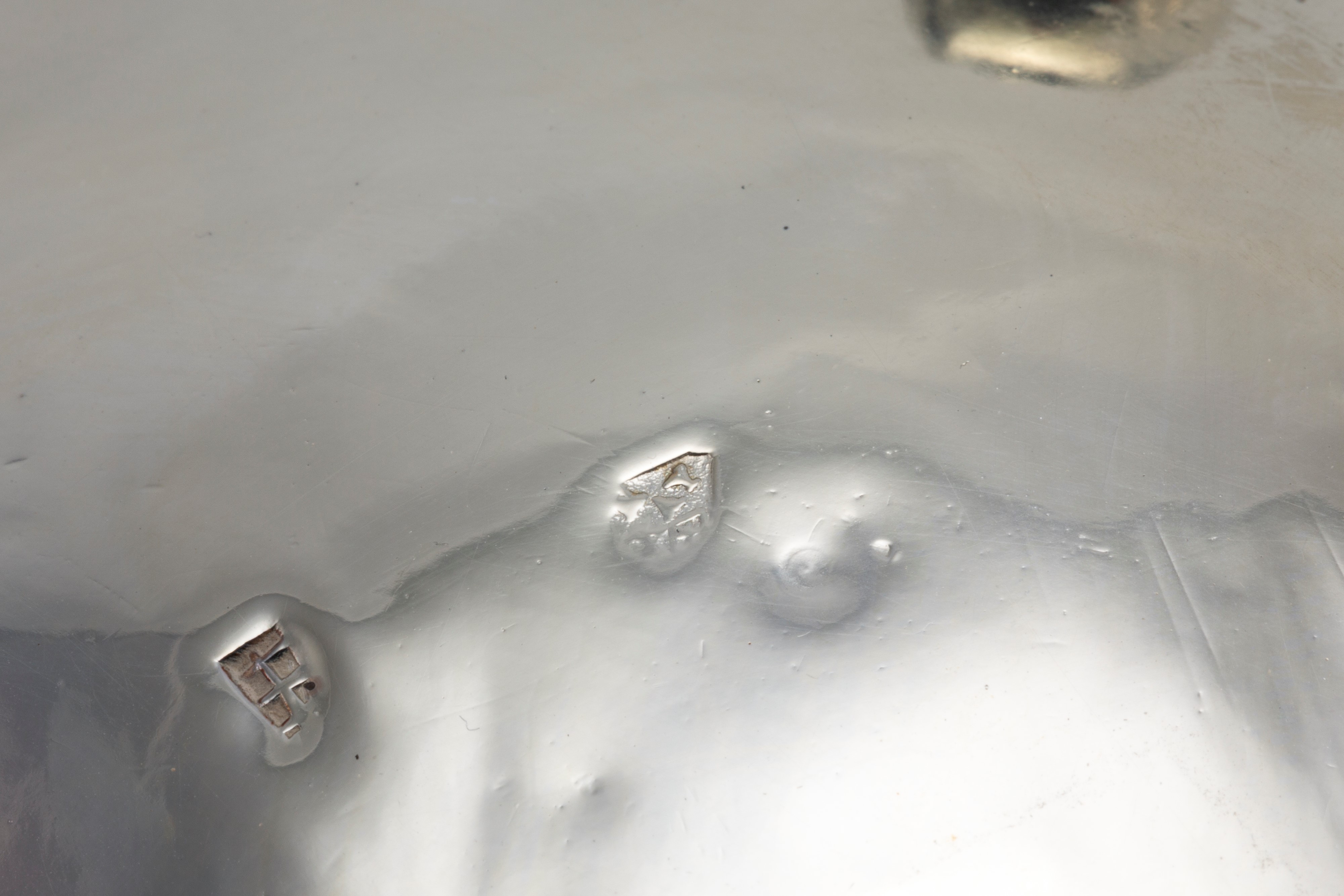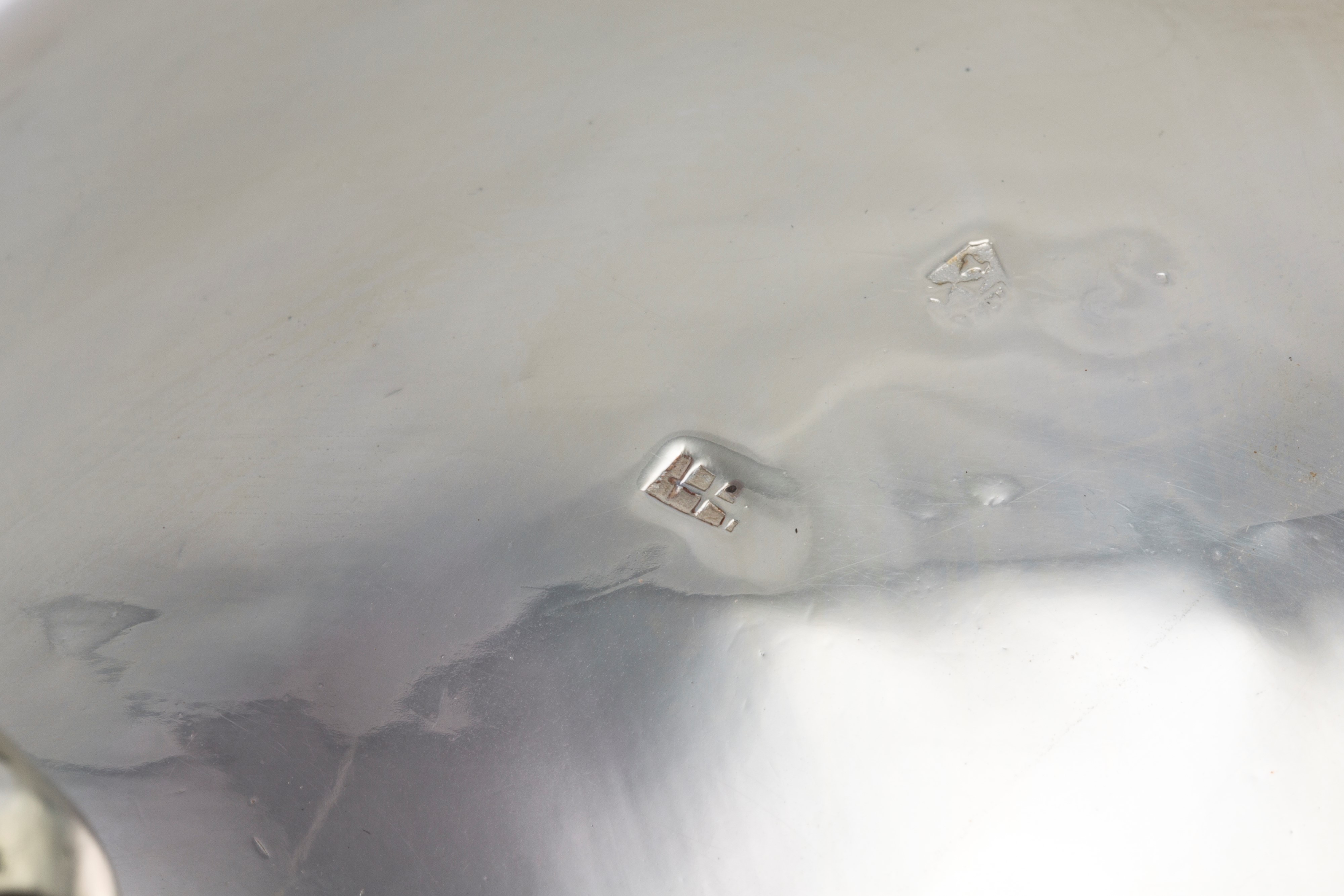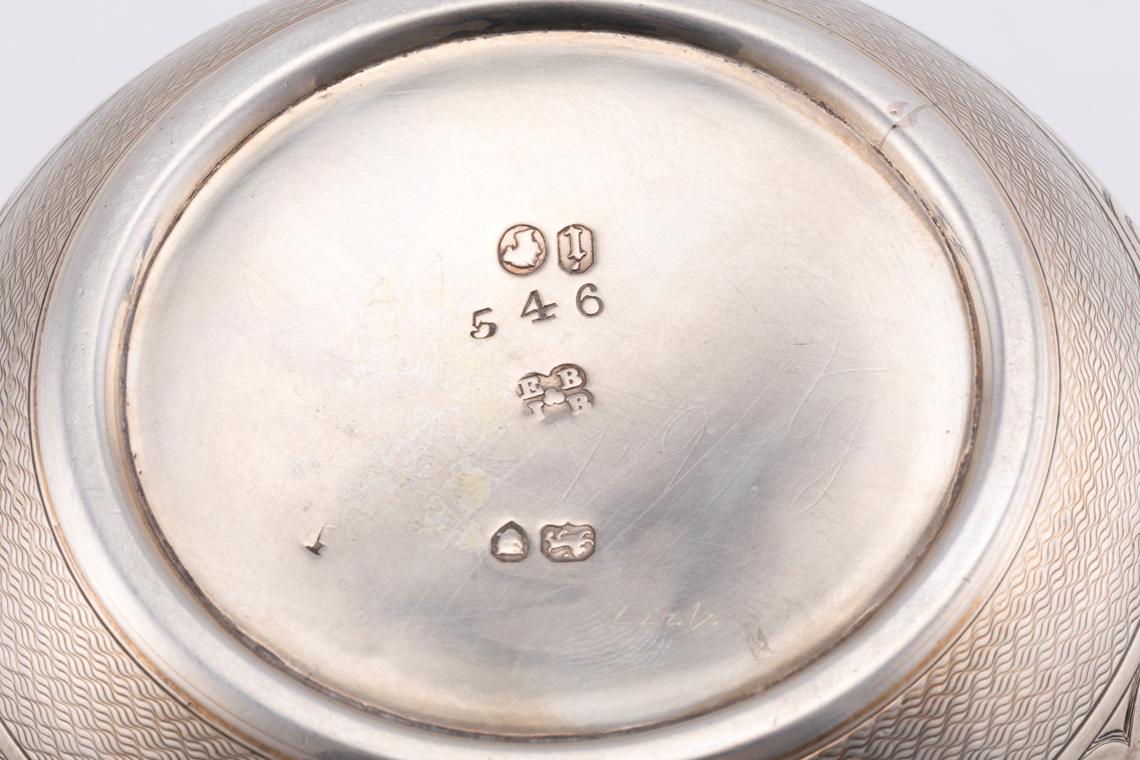 in argento 950 e 925la lattiera con i punzoni di Londra 1864, argentiere EBJB (Edward & John Barnard?), cesellata e incisa con monogramma entro riserva (h cm 12,10);