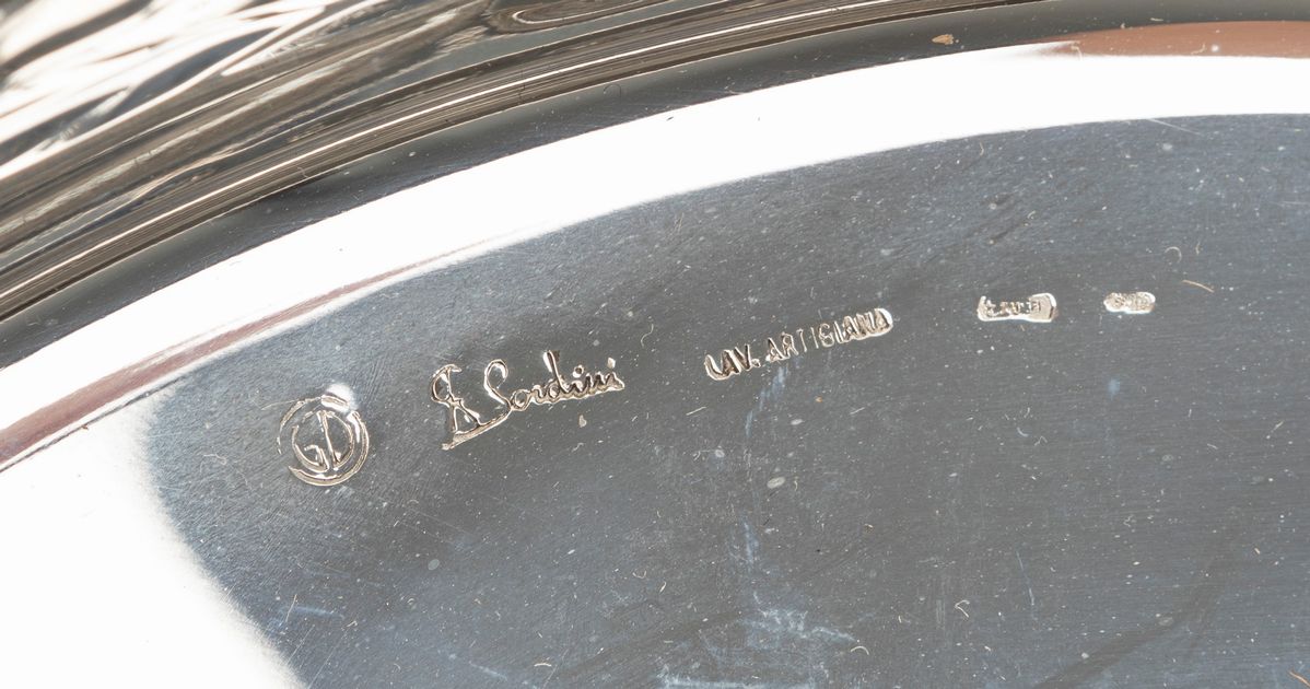 in argentodi forma circolare, con decoro a spighe di grano in rilievo