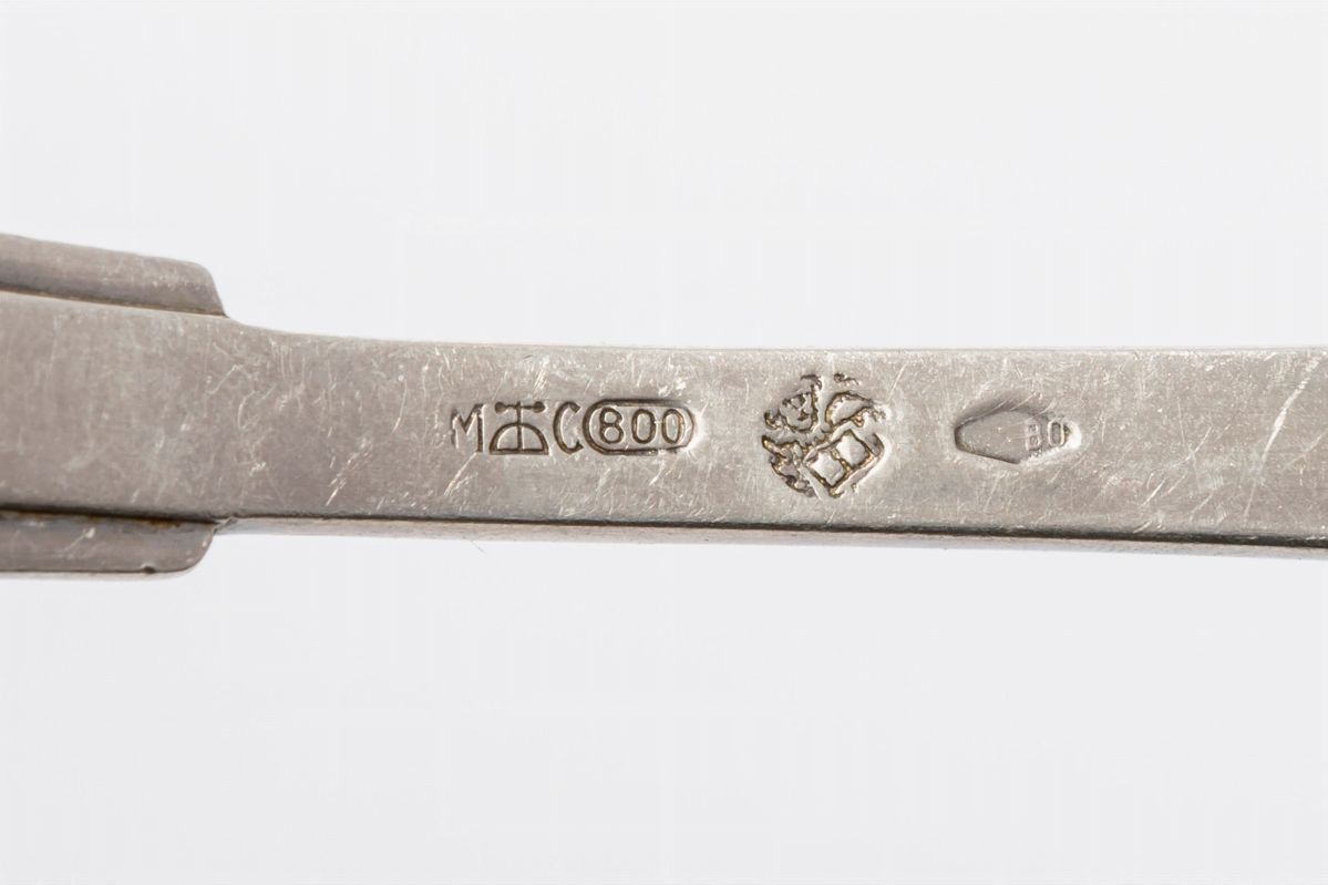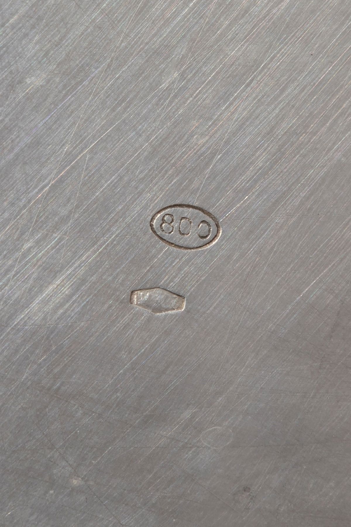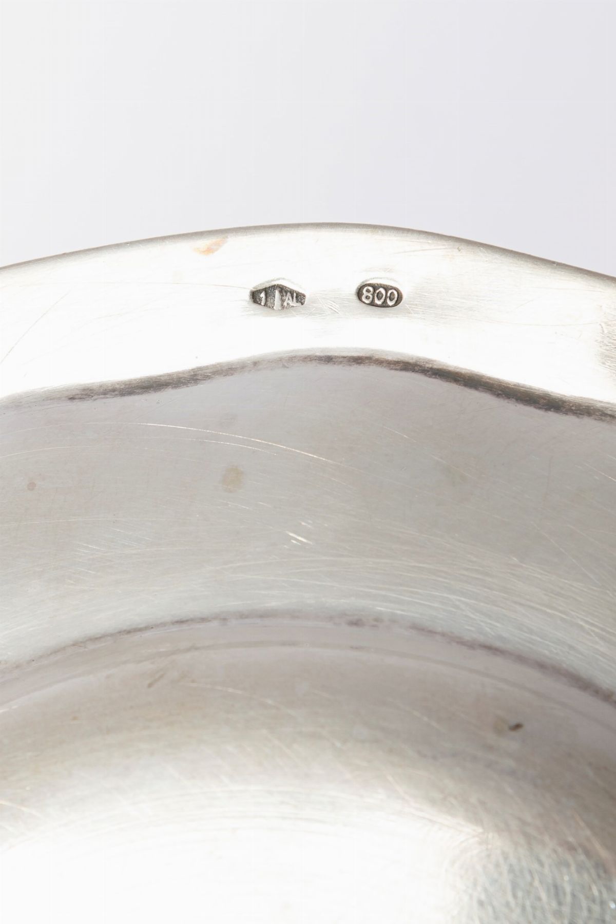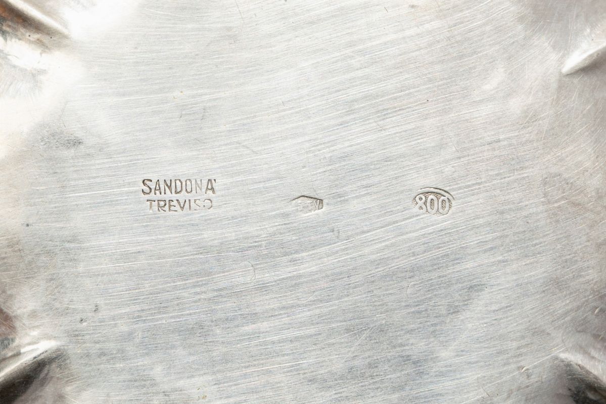 in argentocomposto da un vassoio, sei ciotole, un piattino, due contenitori, una forchetta e un coltello, con differenti decori.