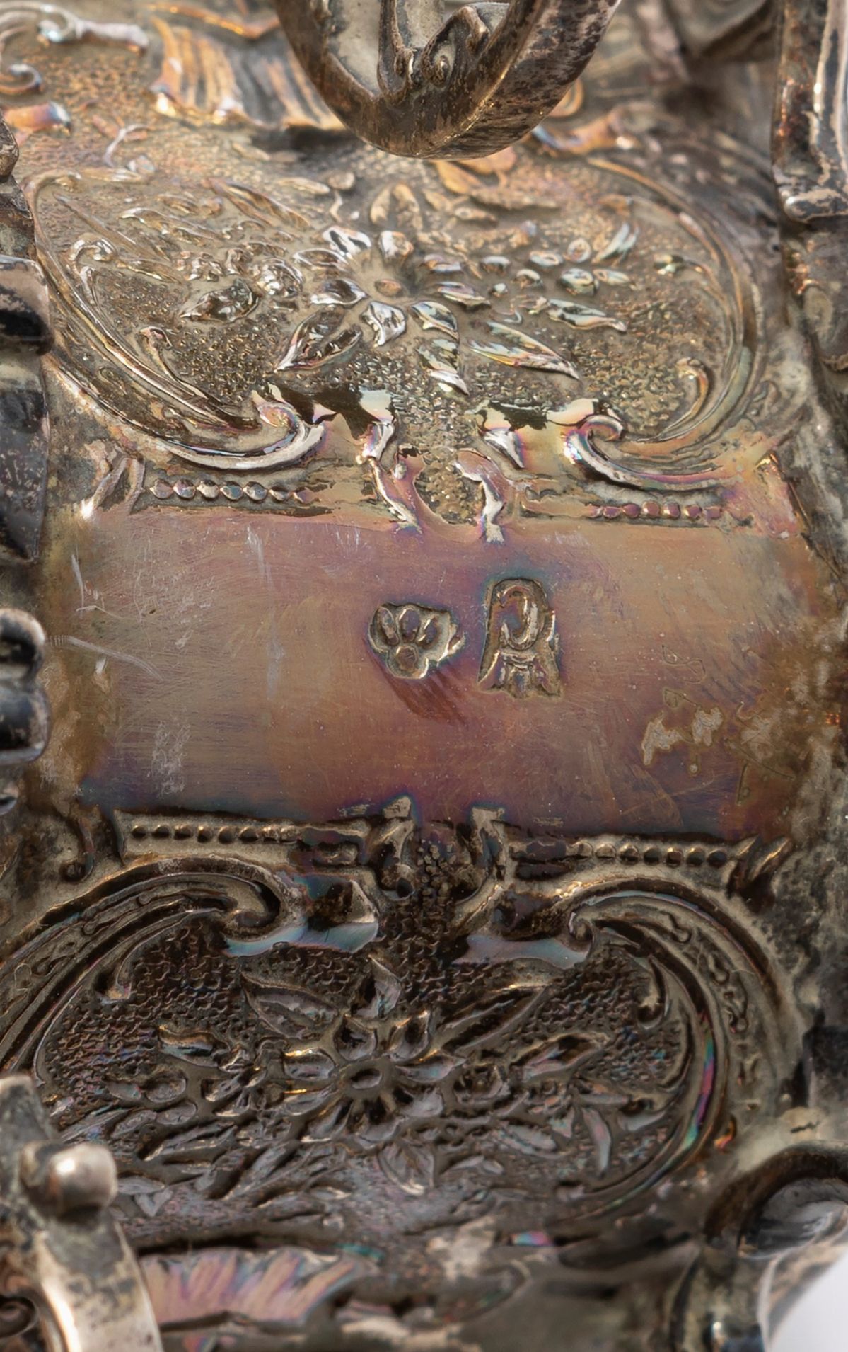 in argentocomposto da una carriola, un porta anelli e due piccoli incensieri in argento sbalzato e cesellato.
