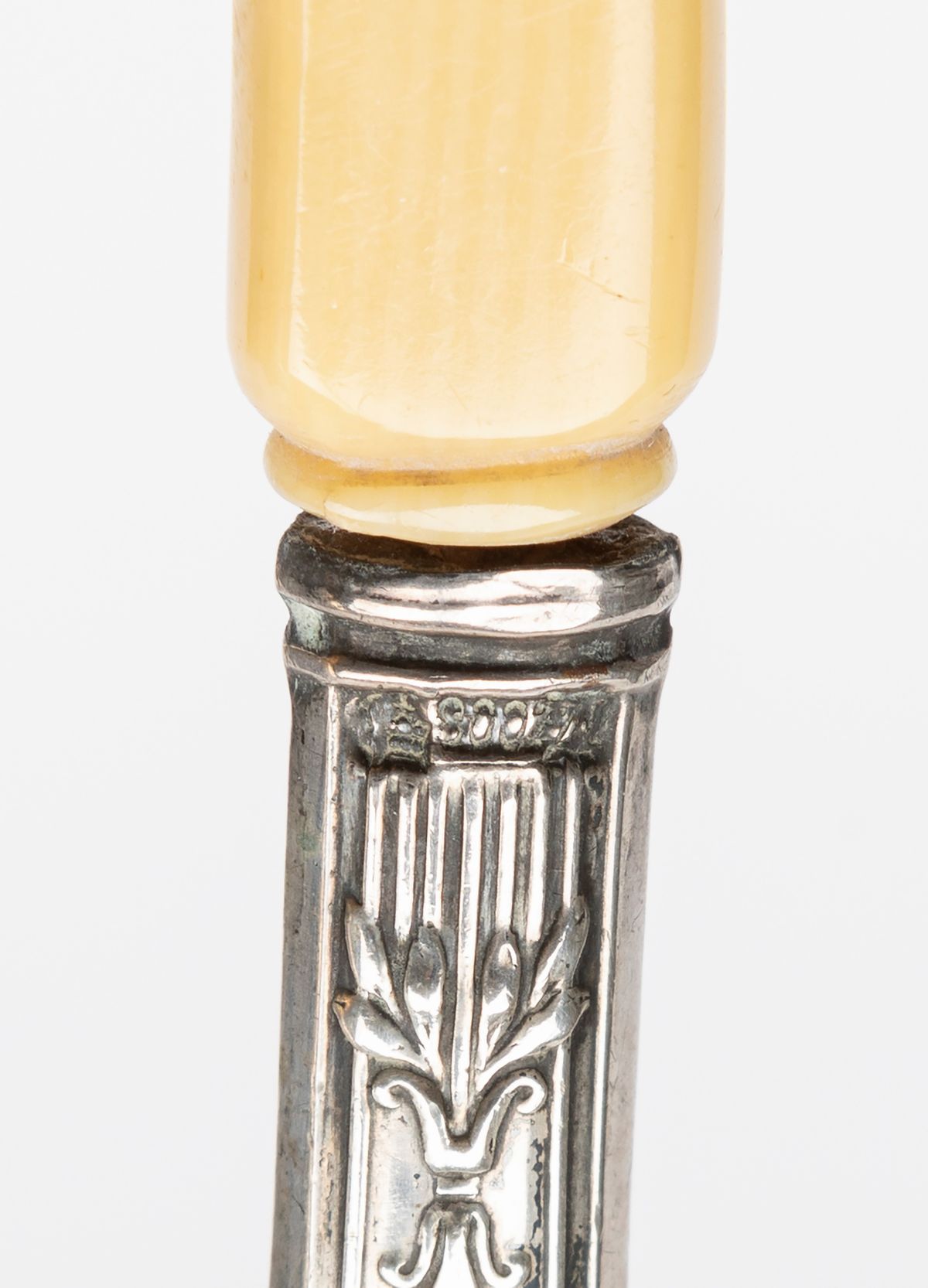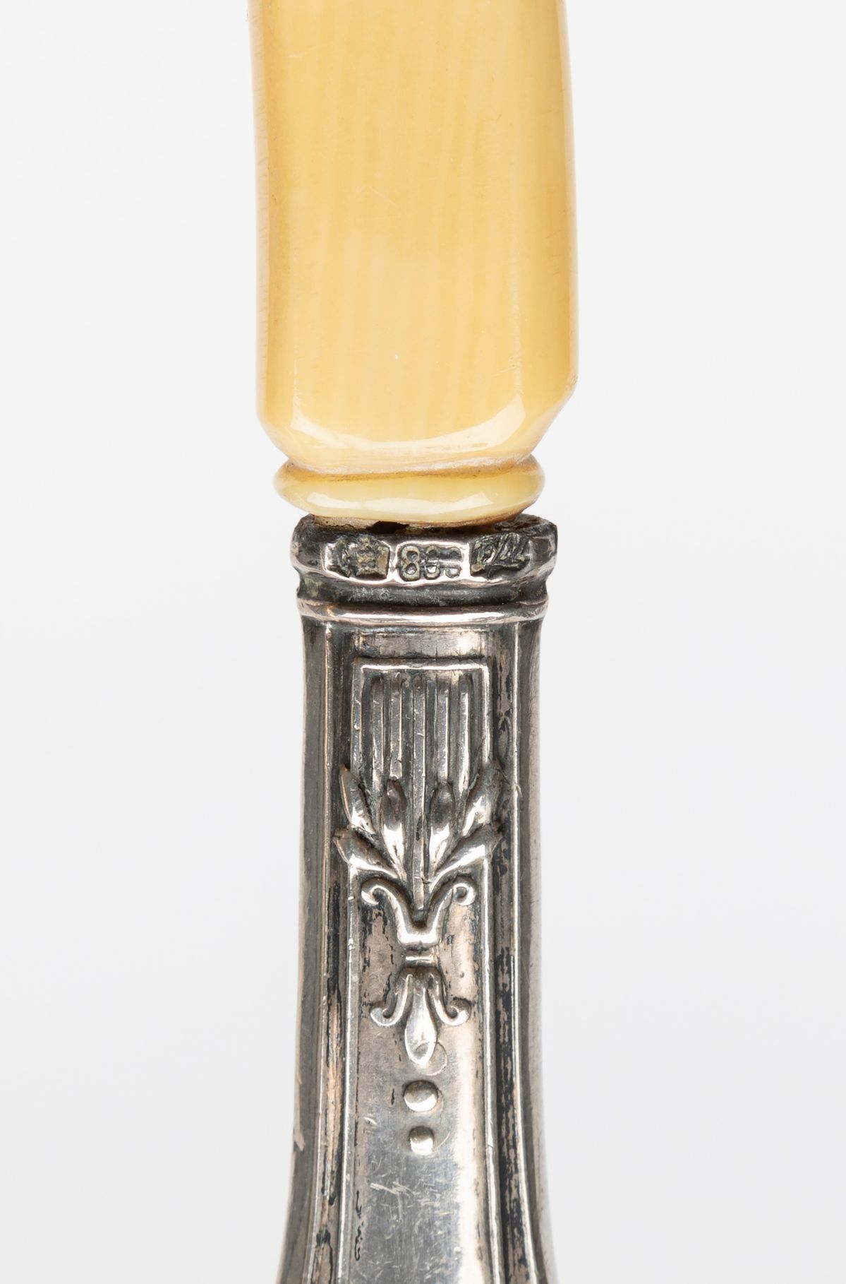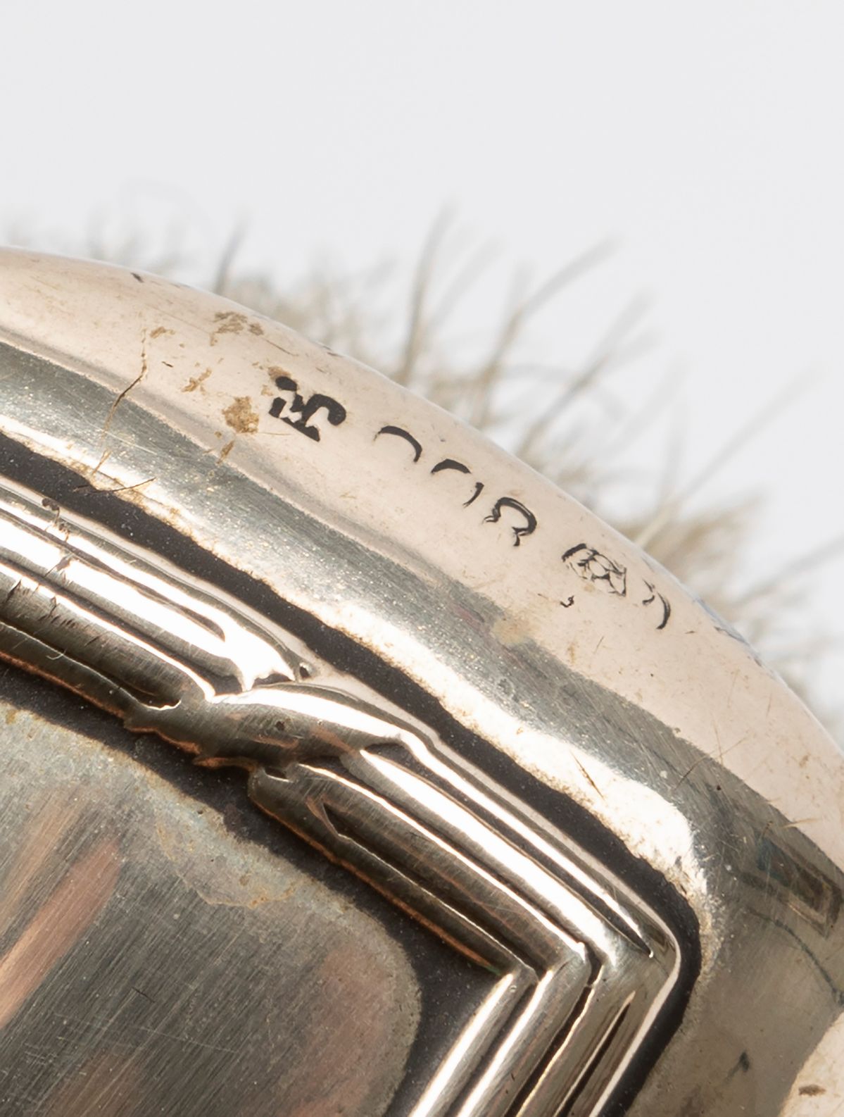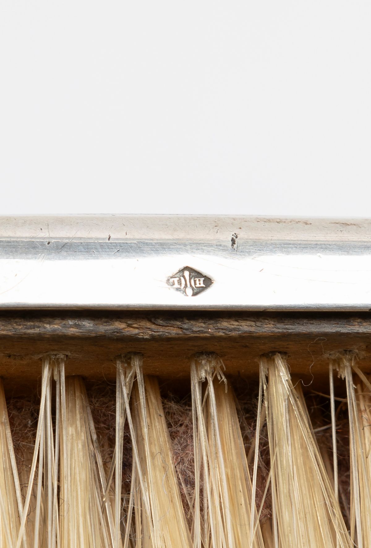 in argentocomposto da due specchi a mano, due spazzole e un allarga guanti in avoriolina.