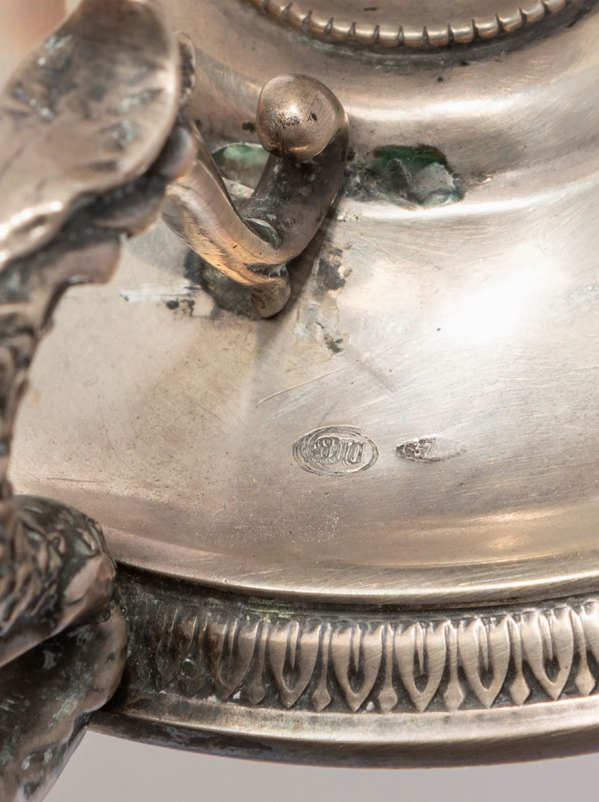 in argentocestino interamente traforato poggiante su quattro piedini e bugie con decoro Impero, difetti (manici da saldare).