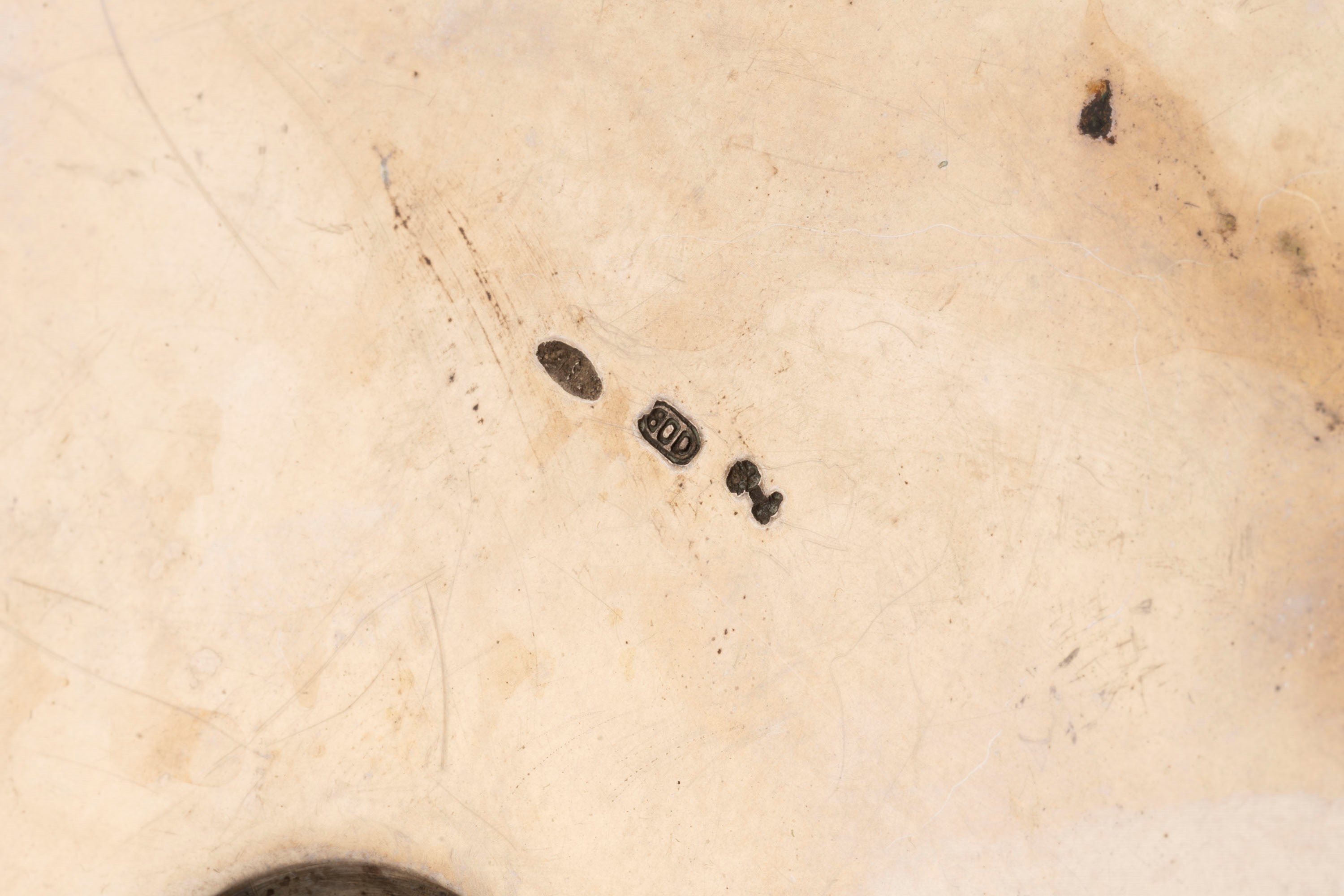 in argentoa cinque fiamme, base rotonda con decoro scanalato e fusto a sbalzo.