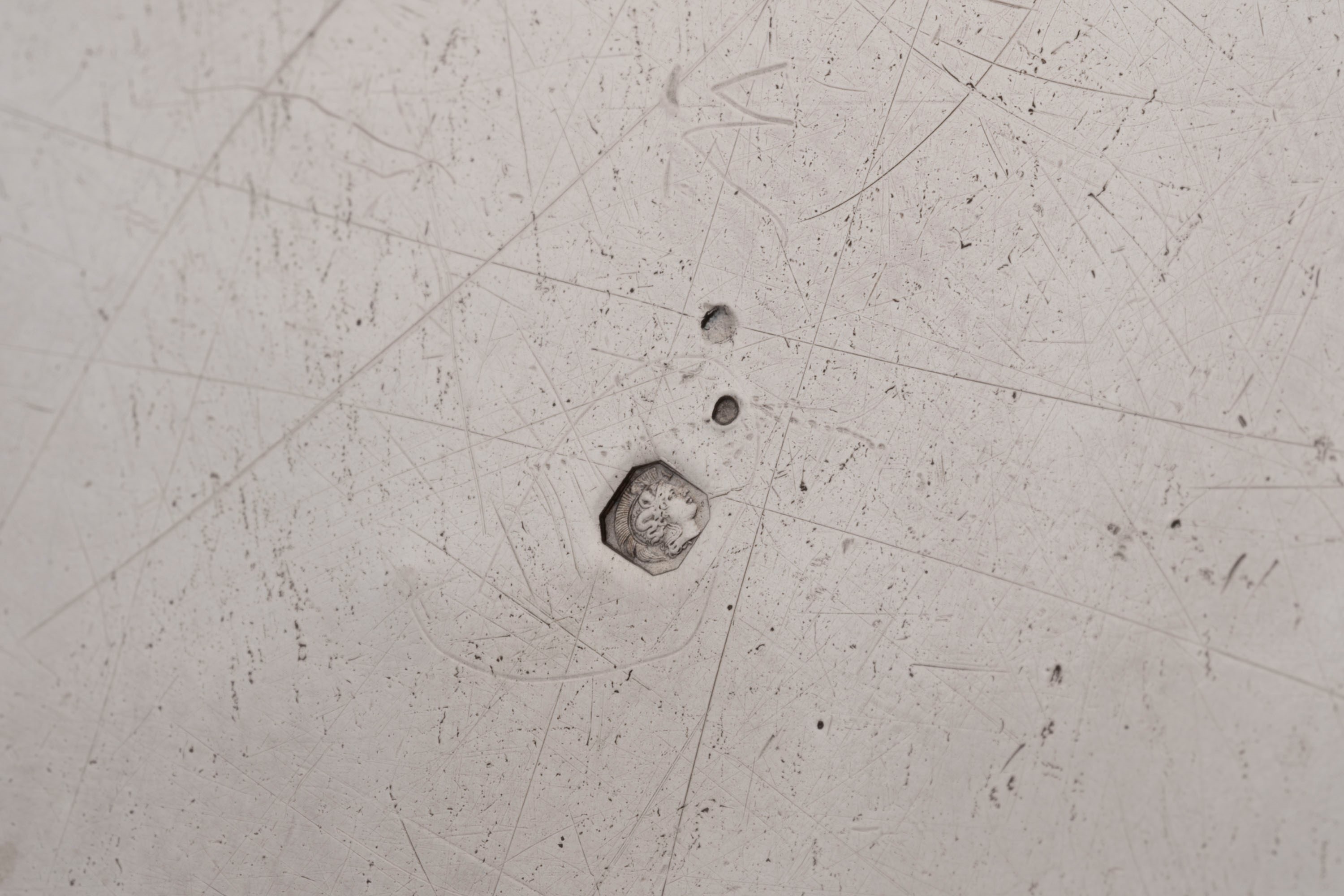 in argentoun'alzata con base esagonale e coppa baccellata, un'alzata con base circolare e decori a motivo fogliaceo in alto rilievo, firmata Veyrat e cestino interamente traforato e intrecciato, con manico, difetti (visibili ammaccature).