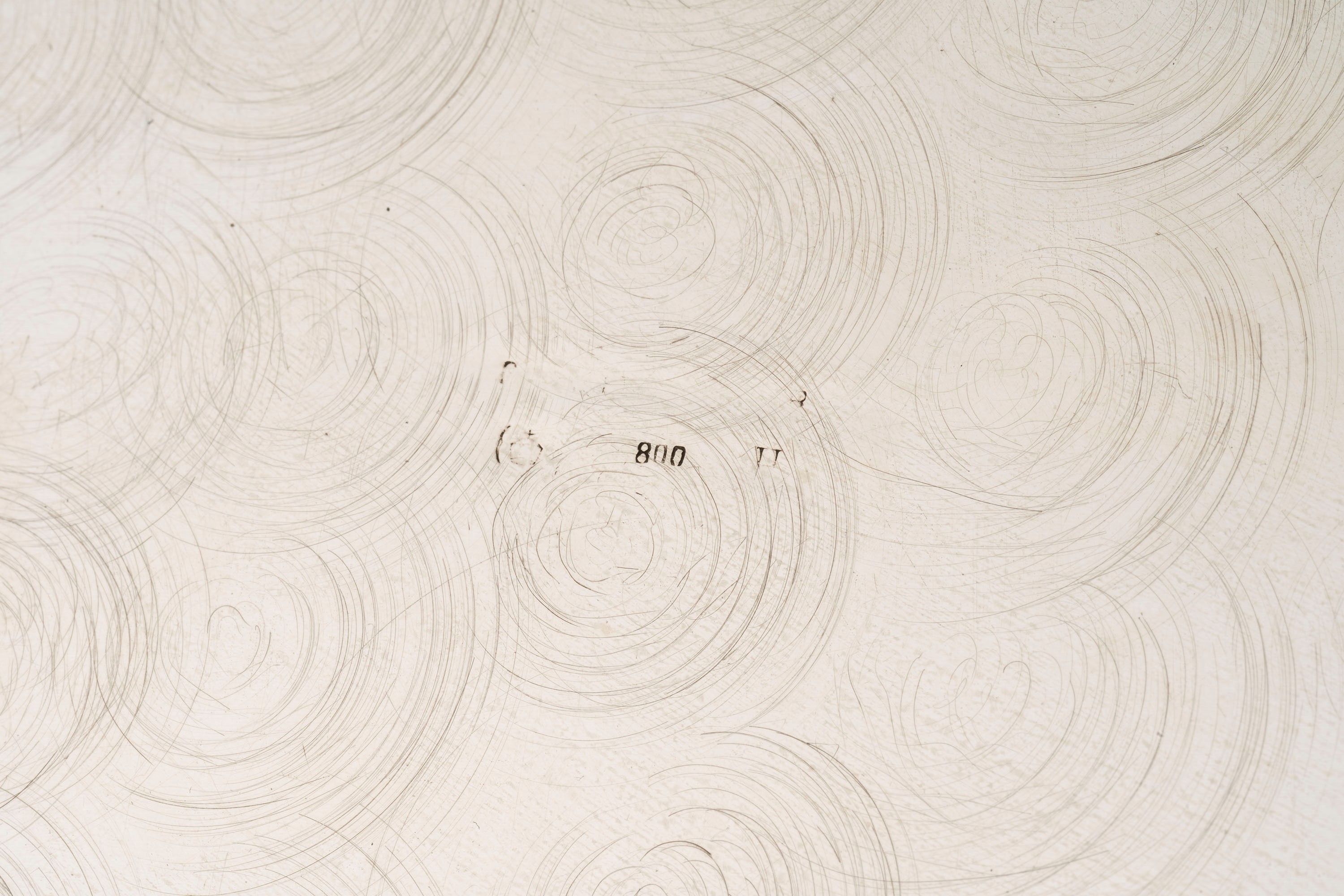 in argentopesciera con bordo polilobato e guantiera con manici a ricciolo.