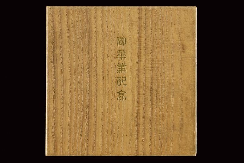 datazione: 1933 provenienza: Giappone, Lavorato a effigiare un'àncora con catenella, recante al centro lo stemma imperiale del Principe Kuni Asaakira; il retro con iscrizione in giapponese. In kiri-box con coperchio esterno recante iscrizione in giapponese 'Dono commemorativo per la graduazione'; all'interno la stessa iscrizione del fermacarte, vergata a mano, ma con la data (1 Novembre 1932). La kiri-box del 1933 con marca del gioielliere 'I. SHINJO & CO. TOKYO JAPAN'. Rarissimo cimelio di un membro della famiglia imperiale giapponese. Il Principe Kuni Asaakira (1901 - 1959) fu Viceammiraglio della flotta Imperiale, fratello maggiore dell'Imperatrice Kojun (Nakago) consorte dell'Imperatore Showa (Hiroito).Il fermacarte fu un regalo commemorativo per tutti gli invitati alla festa della cerimonia per la laurea del principe al collegio navale, il 26 Novembre 1932, festeggiata in una data non precisata dell'anno 1933. Altri fermacarte donati dal principe si trovano in collezioni private giapponesi.Il nostro esemplare fu regalato dal principe a un suo insegnante del collego navale, di nome Nakajima, come riportato su una nota in inglese che si trova all'interno della kiri-box, datata 1948. dimensioni 7.4 x 7.8 cm.
