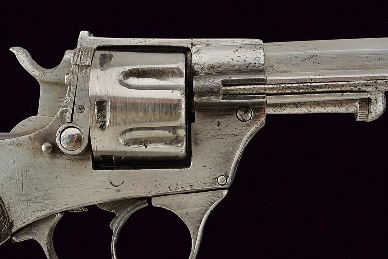 datazione: 1874 - 1889 circa provenienza: Regno d'Italia, Canna ottagonale rigata (incrostazioni all'interno, da pulire, rigatura parzialmente visibile), cal. 10,6 mm. in volata. Tamburo a sei colpi, meccanica funzionante in singola e doppia azione. Spazzolatura superficiale e tracce di pitting. Guancette zigrinate in legno. Priva di marcatura. lunghezza 28,7 cm.
