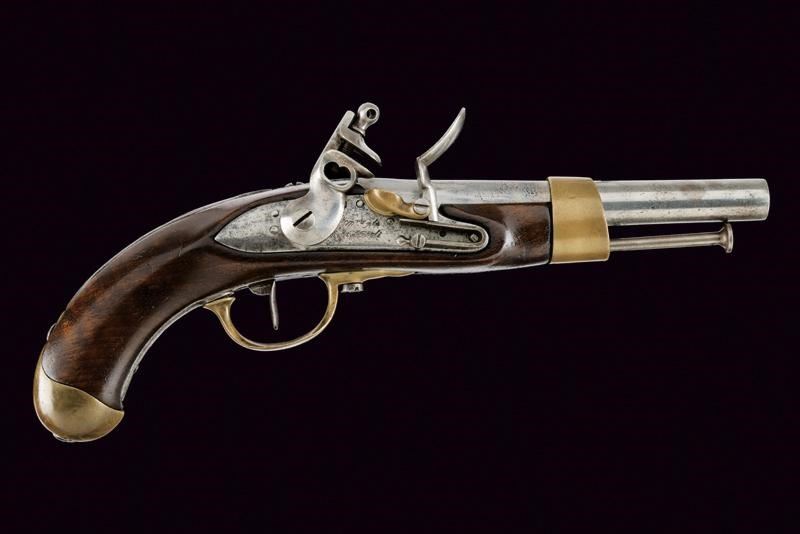 Canna tonda liscia con culatta ottagonale, cal 18 mm. Batteria marcata "M.ra R.le di Napoli", datata all'interno "1823" e con punzone e "16". Meccanica funzionante. Scodellino in ottone. Cassa in legno a tre quarti. Fornimenti in ottone e ferro con resti di punzoni, la coccia marcata "1 S.46." Segni d'uso e del tempo. Bacchetta in ferro.