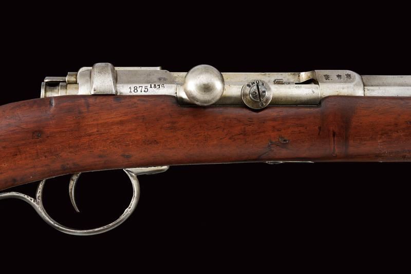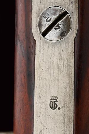 Canna tonda rigata (rigatura ben visibile) con base ottagonale, marcata "OESTERR. WAFFENFBGES", "FW" sotto corona, con matricola "94xxH" e con vari punzoni, dotata di alzo variabile, mirino e attacco per la baionetta (sulla fascia), cal. 11 mm. Otturatore marcato "Mod. 71" e con la stessa matricola e date "1875 1876"; cassa intera in legno con fornimenti in ferro e ponticello in ottone. Meccanica In ordine.
