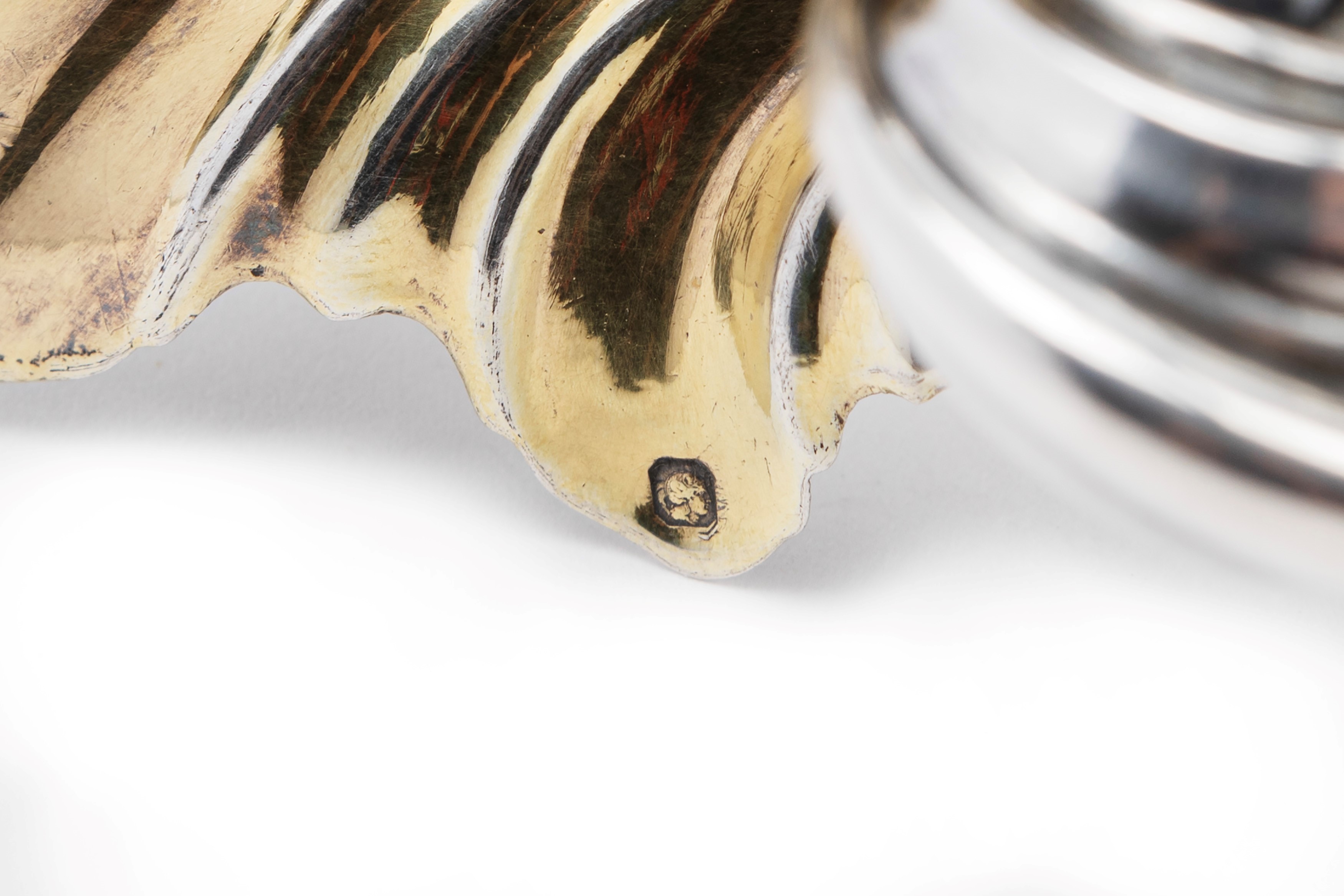 Quattro saliere in argento a forma di conchiglia e quattro cucchiaini