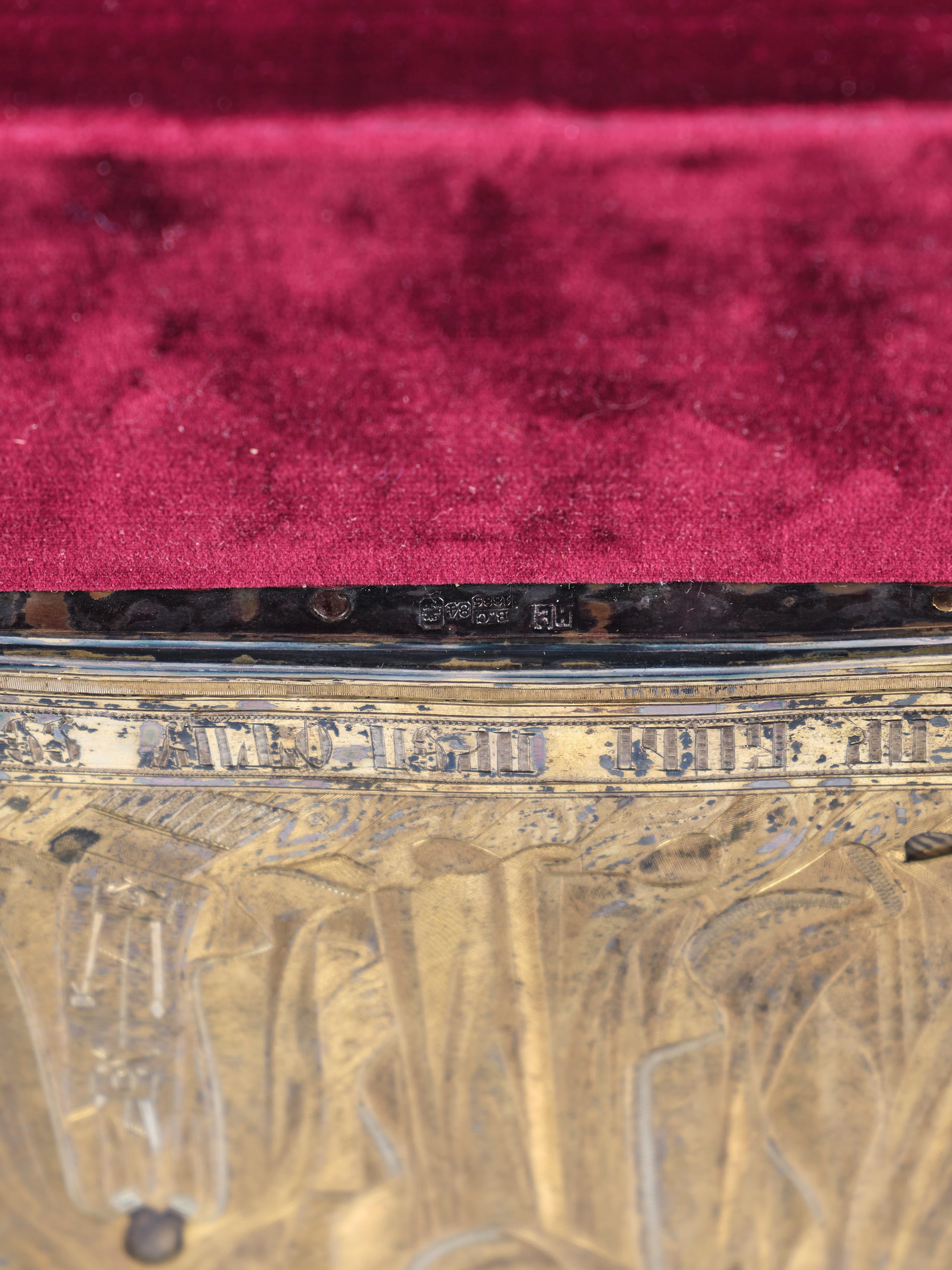 raffigurante santi, punzoni della città di Mosca, assaggiatore Viktor Savinkov, argentiere non identificato. Entro cornice rivestita in velluto rosso