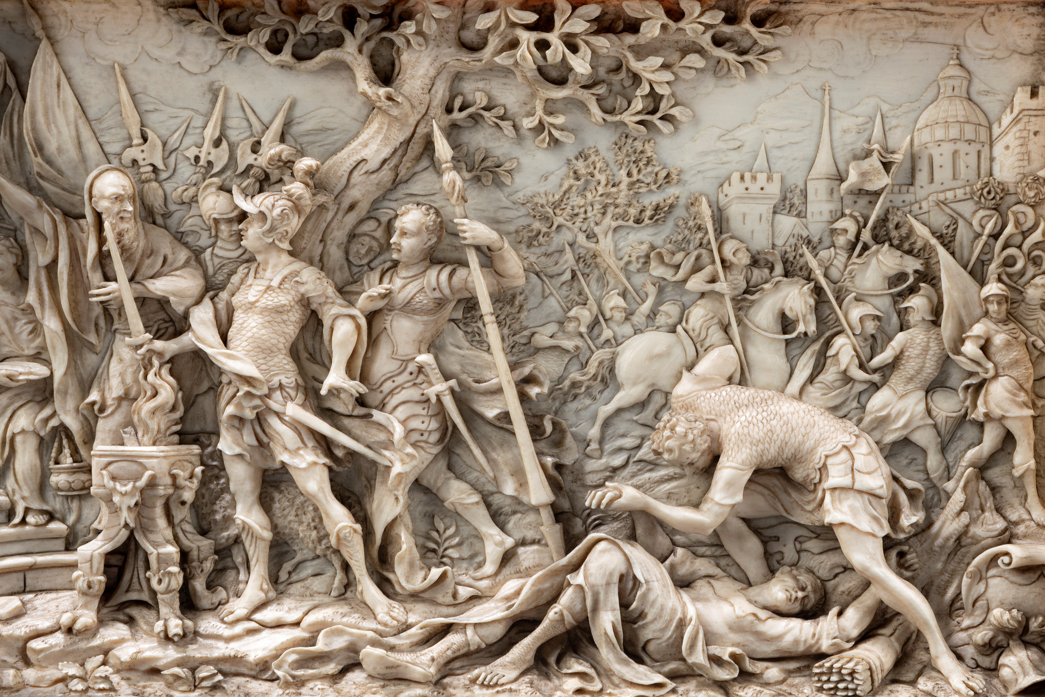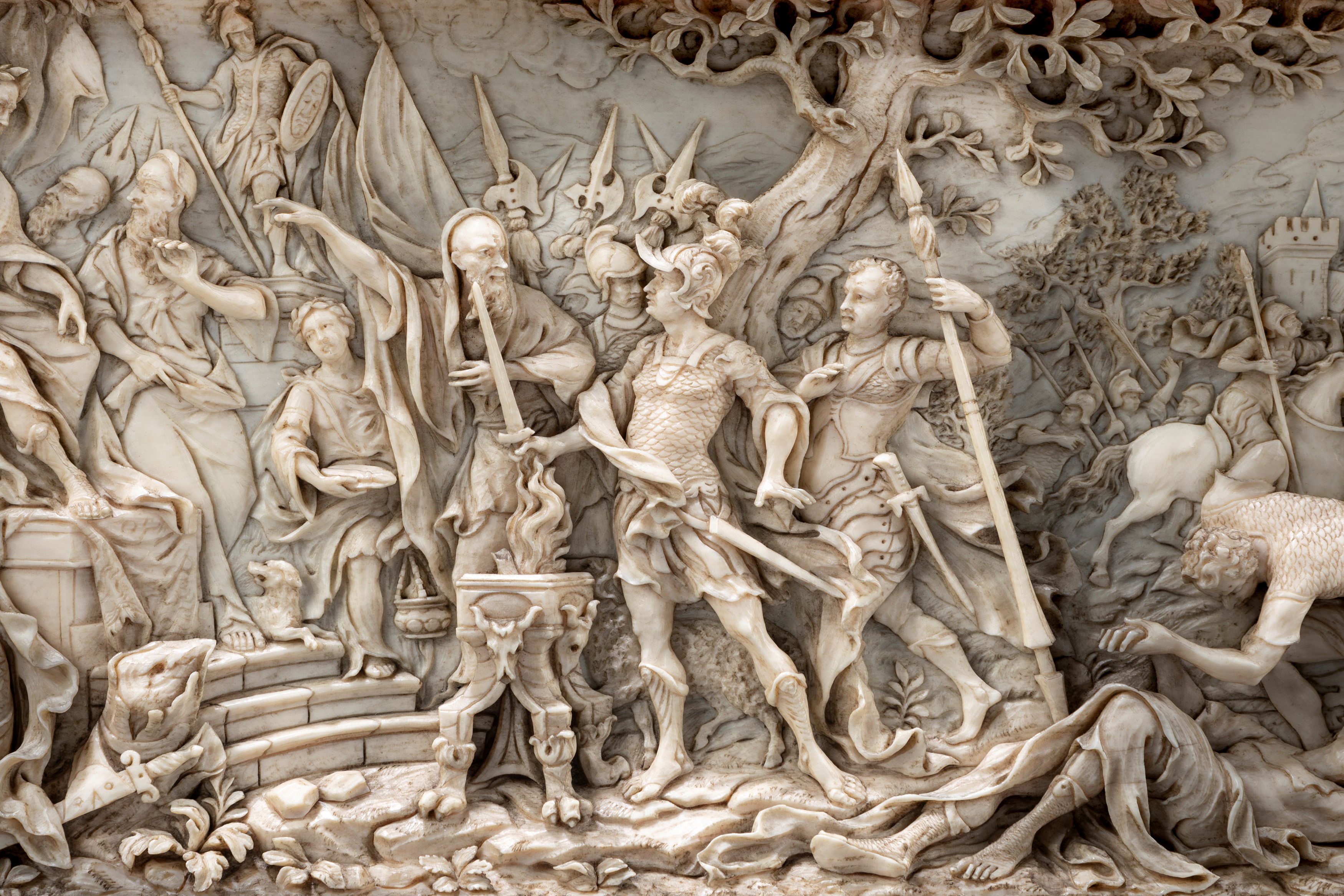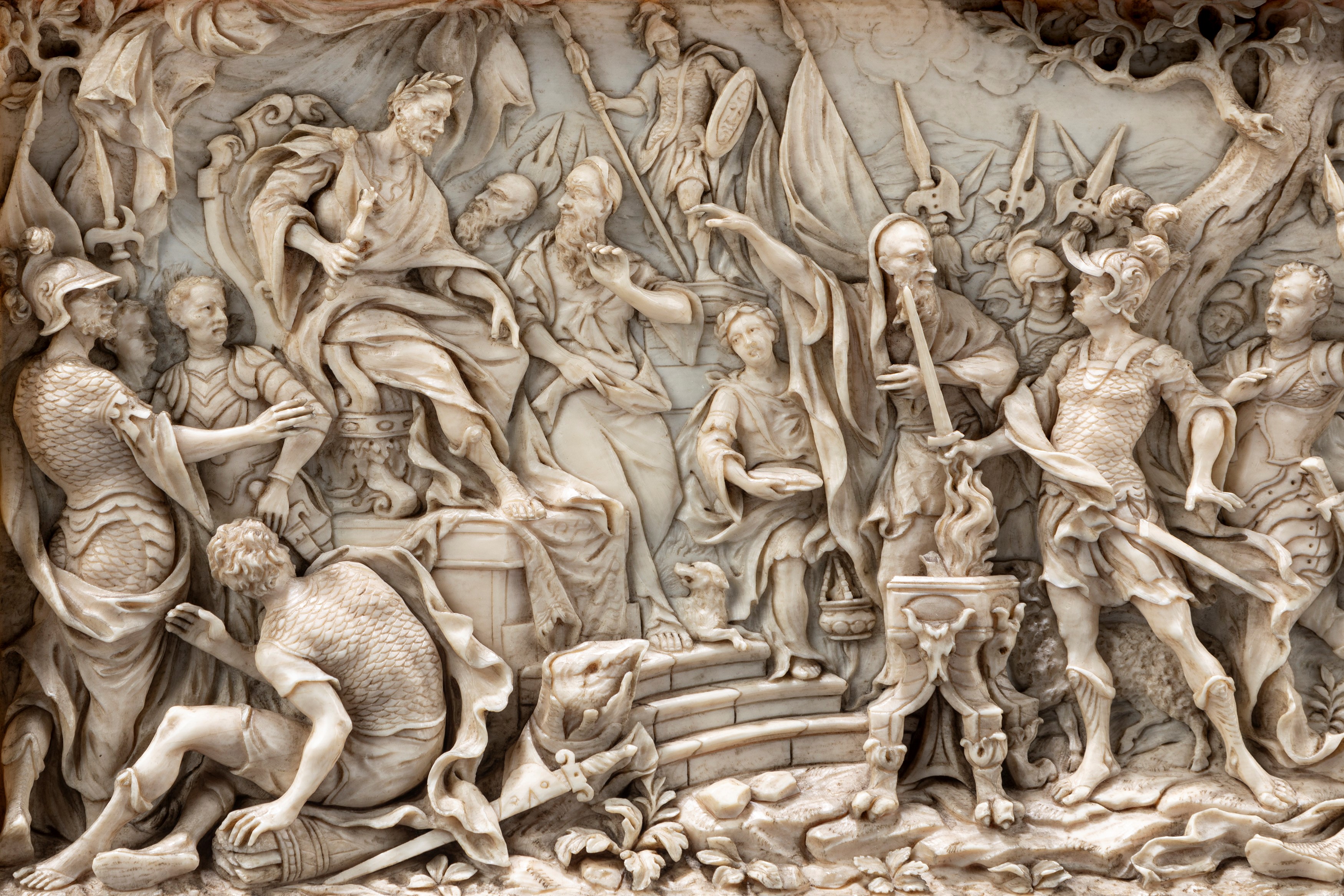 ☼Placca in avorio finemente intagliata raffigurante il Sacrificio di Muzio Scevola, fine secolo XVIII