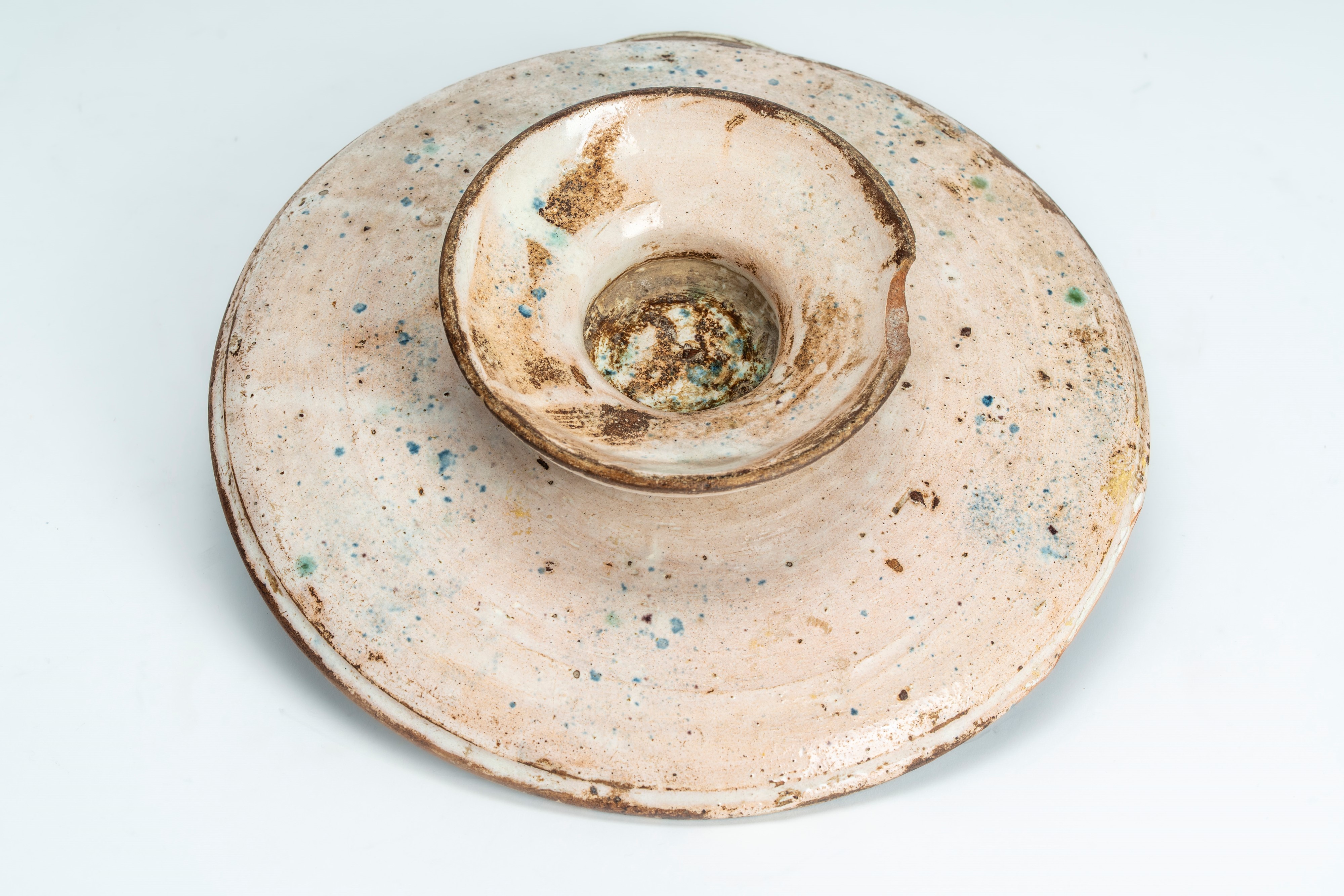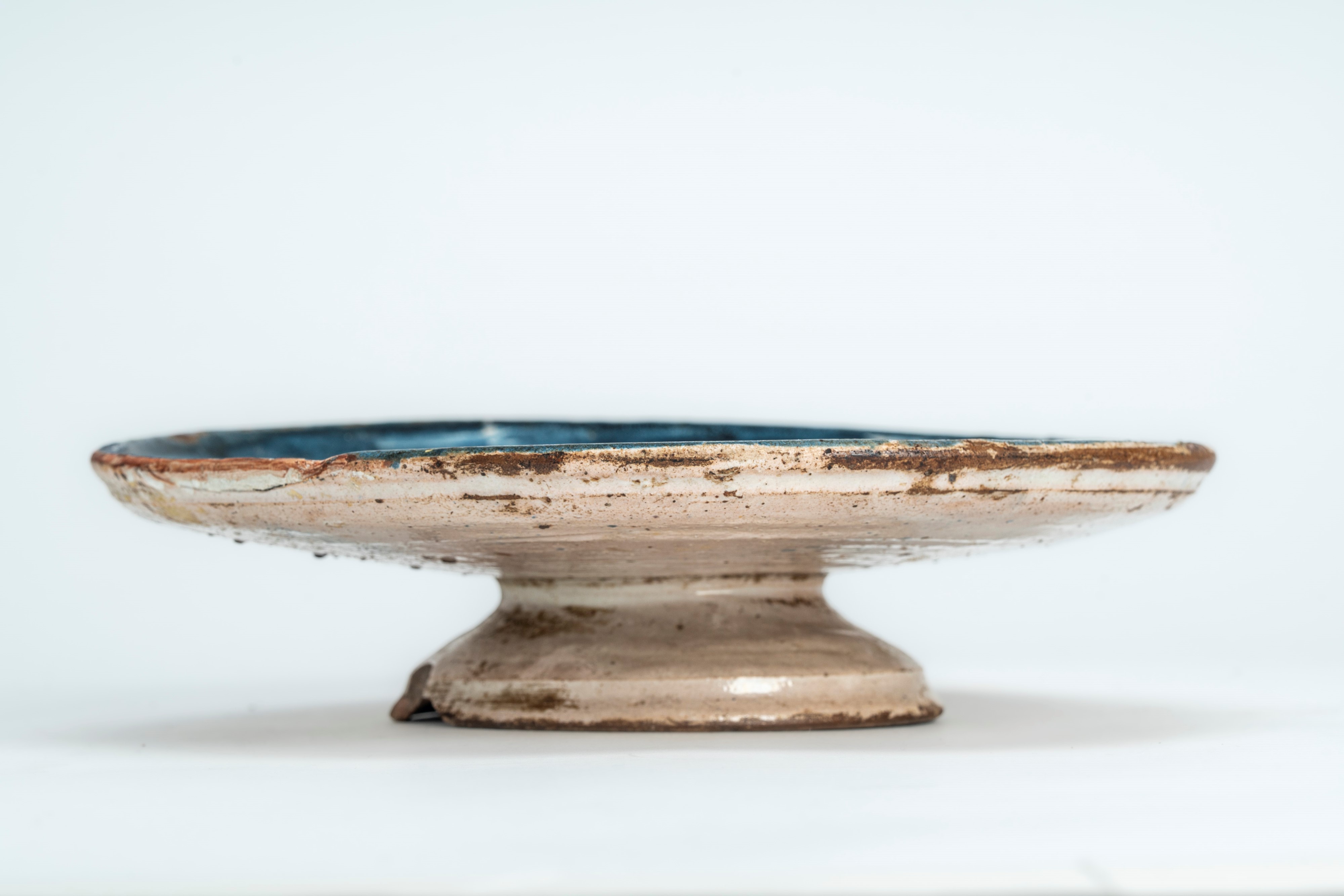 Alzata in terracotta smaltata con decoro blu cobalto a volatile in un paesaggio stilizzato. Liguria, secolo XVIII