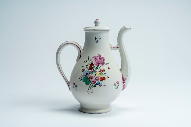 Caffettiera in porcellana con decoro policromo “al mazzetto”. Manifattura Ginori a Doccia, 1770–1780 circa