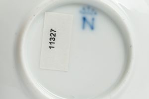 Tazzina con piattino stemmato in porcellana a rilievo con fondo oro. Manifattura Ginori, seconda...