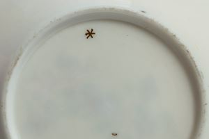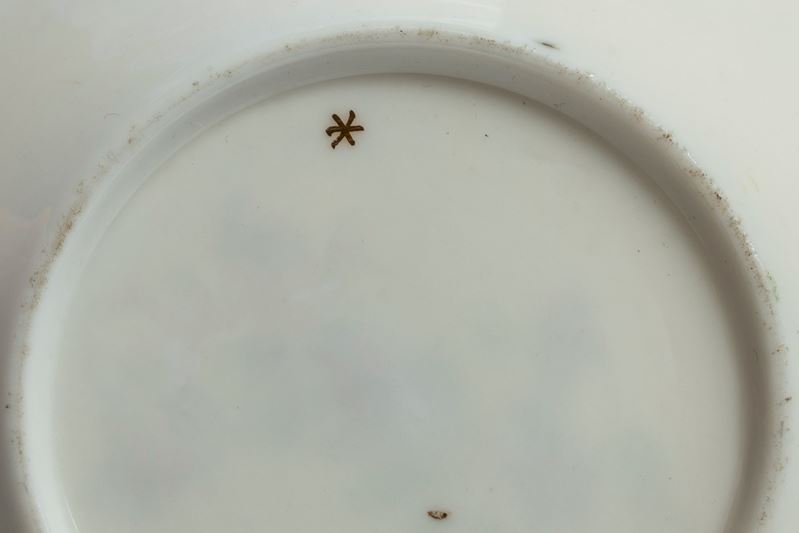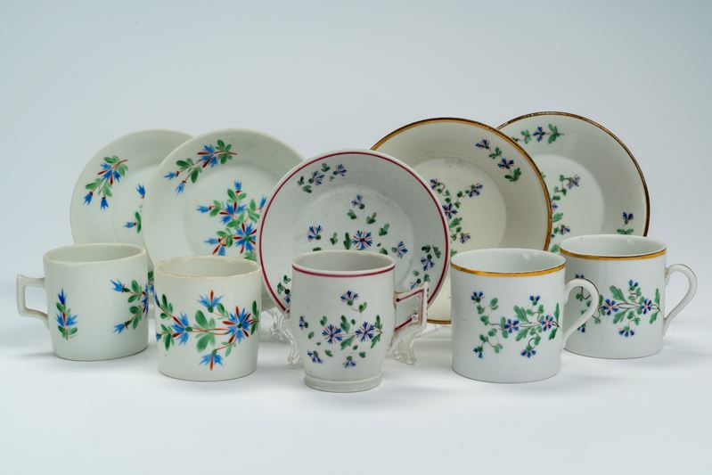 Due coppie di tazzine con piattino in porcellana con decoro policromo “a fiordalisi”, più una tazzina con piattino singola con lo stesso decoro. Manifattura Ginori a Doccia, fine secolo XVIII – inizio secolo XIX