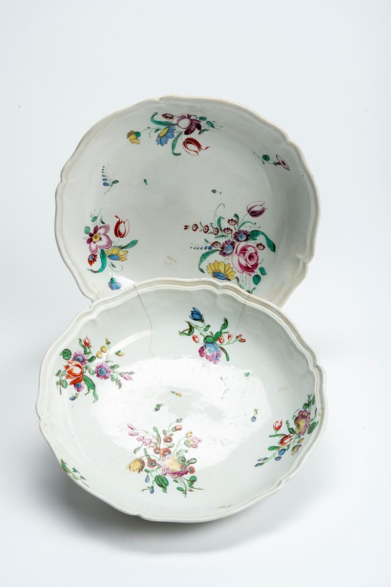 Due insalatiere in porcellana con decoro policromo “al mazzetto”. Manifattura Ginori a Doccia, circa 1770–1780.