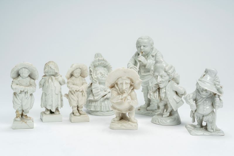 Gruppo di otto caramogi in porcellana bianca di diverse dimensioni. Manifatture del XVIII/XIX secolo