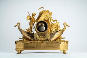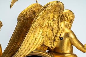 Pendola “L’Amour faisant passer le Temps” in bronzo dorato, da un modello di Louis-Simon Boizot (1743–1809) e Claude Galle (1759–1815), Francia, primo quarto secolo XIX