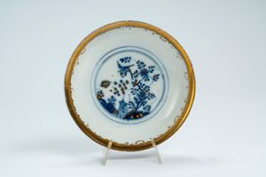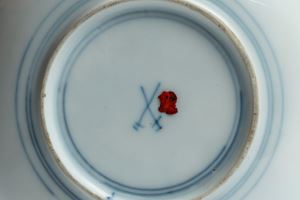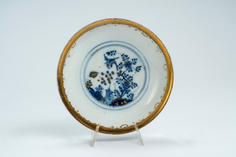 Piattino in porcellana con decoro all'orientale in blu di cobalto e oro. Manifattura di Meissen, secolo XVIII