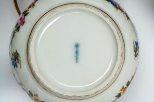 Tazzina con piattino in porcellana con decoro policromo “al mazzetto” e a fiori sparsi. Manifattura...