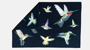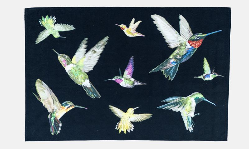 decorato a colibrì in volo contro un fondo scuro