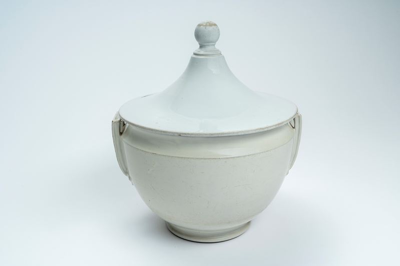 Zuppiera biansata con coperchio in ceramica bianca. Manifattura Ginori a Doccia, inizio secolo XIX