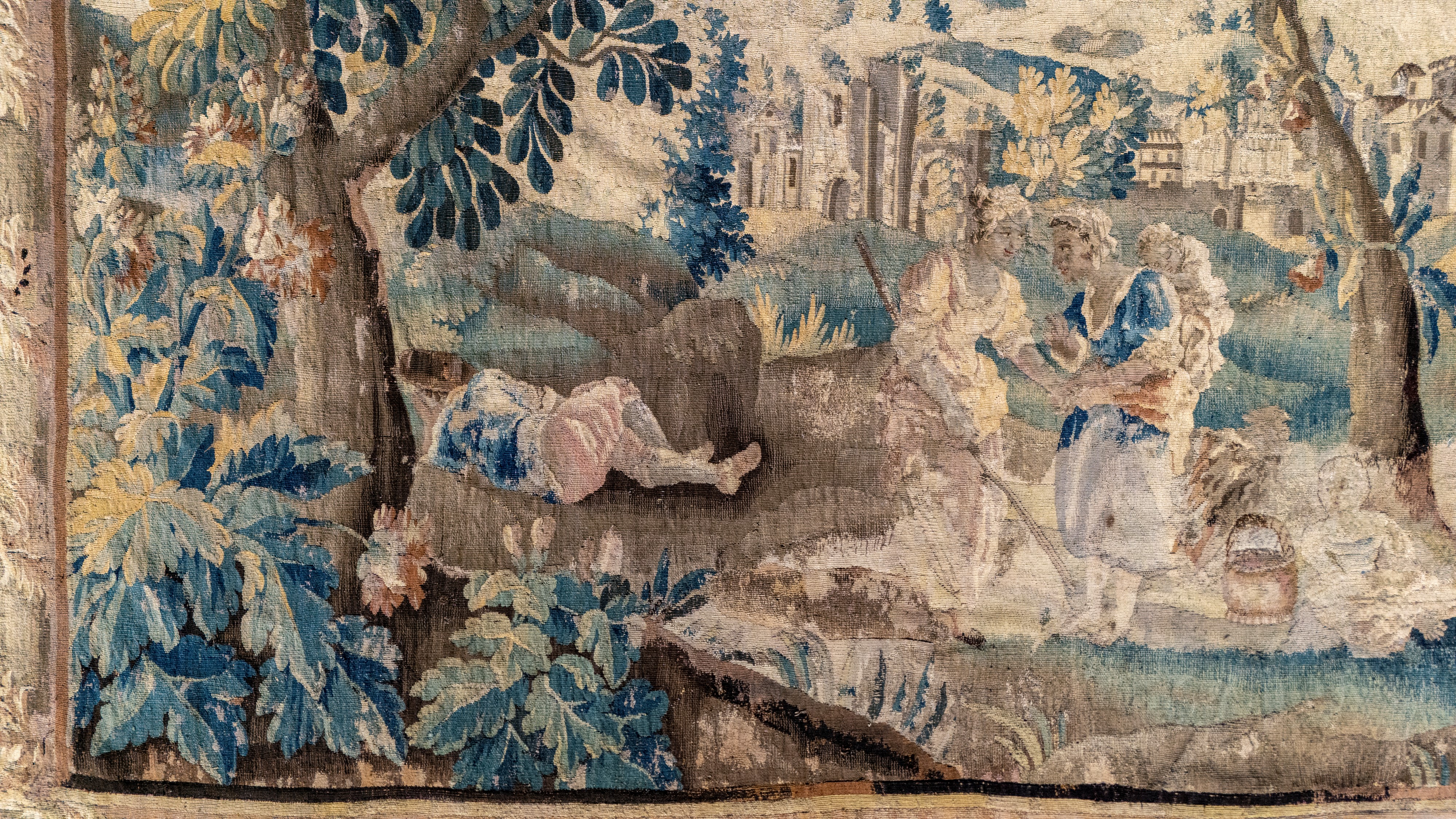 Arazzo decorato con scena pastorale in paesaggio agreste. Fiandre, secolo XVII