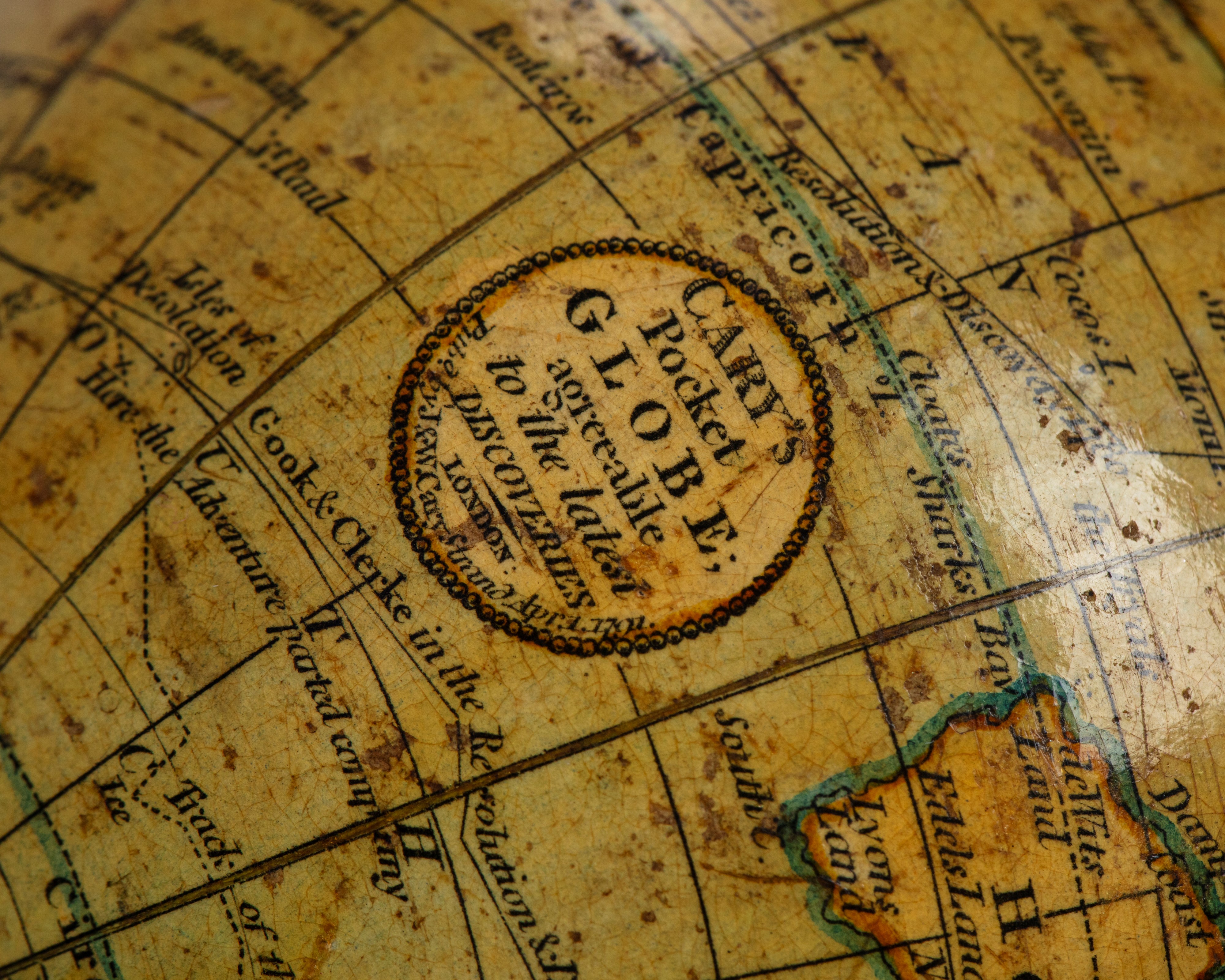 CARY, John and William. Cary's terrestrial pocket globe; agreeable to the latest discoveries. London: Pub. by J. and W. Cary Strand Apr. 1, 1791. Entro custodia originale