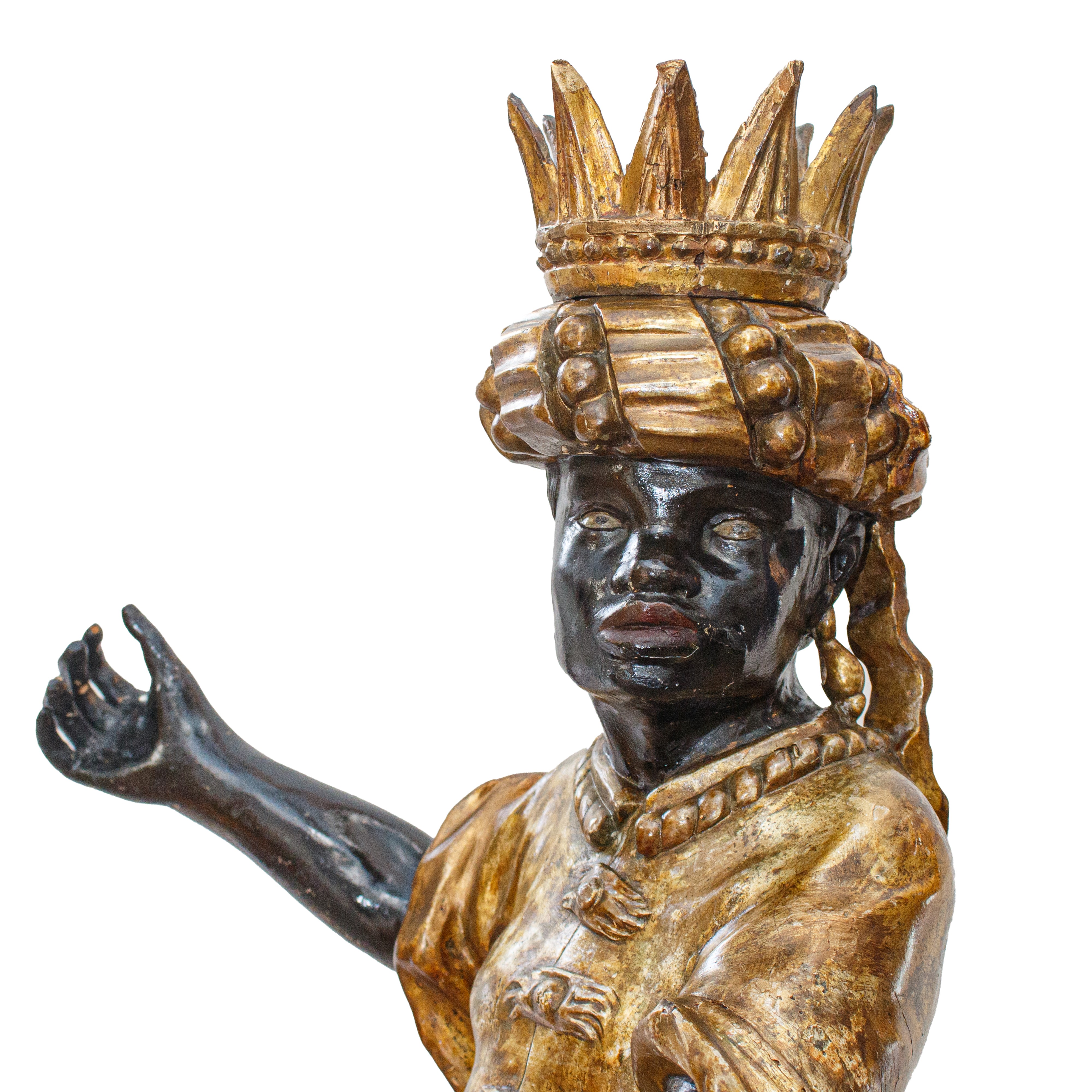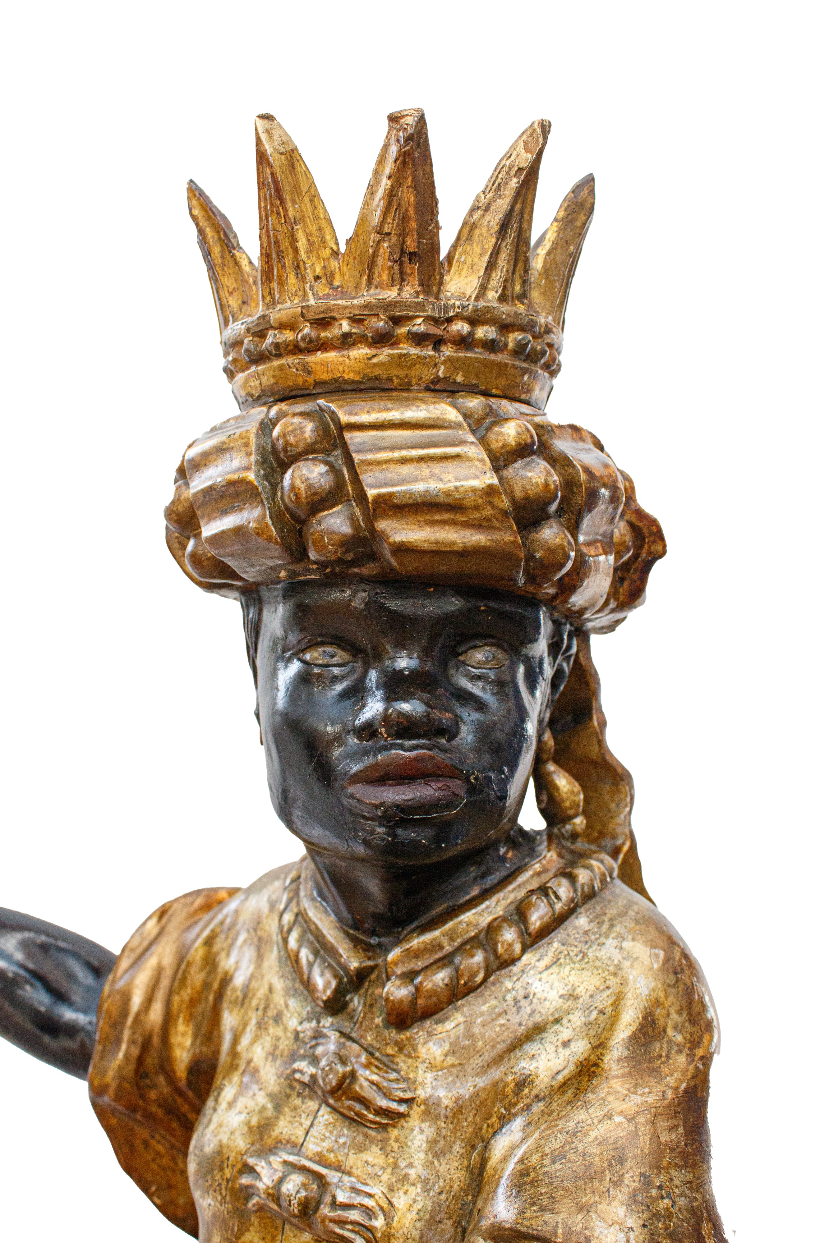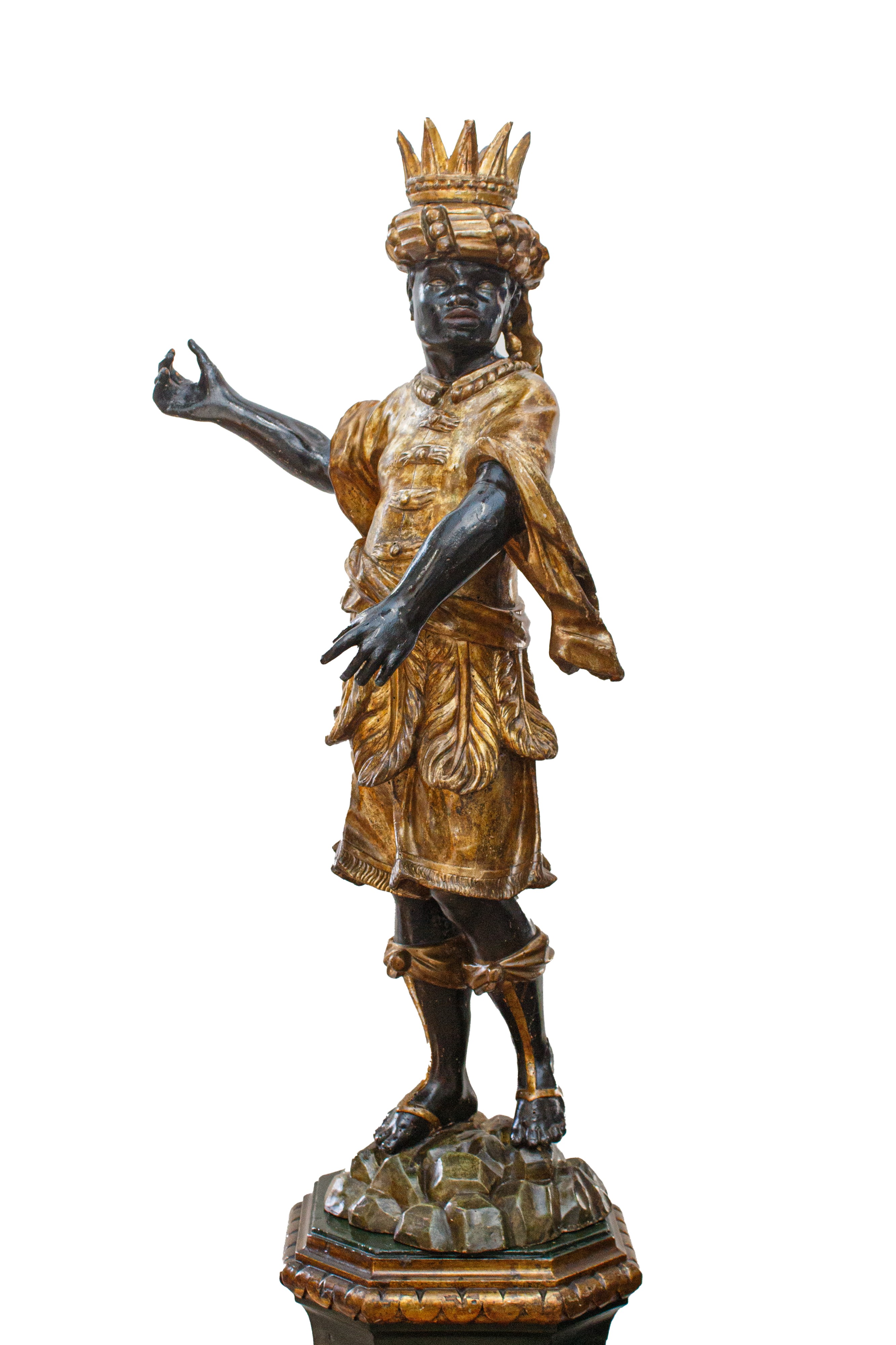 la base a sezione ottagonale, la figura del moro con corona e poggiante su finte rocce.
