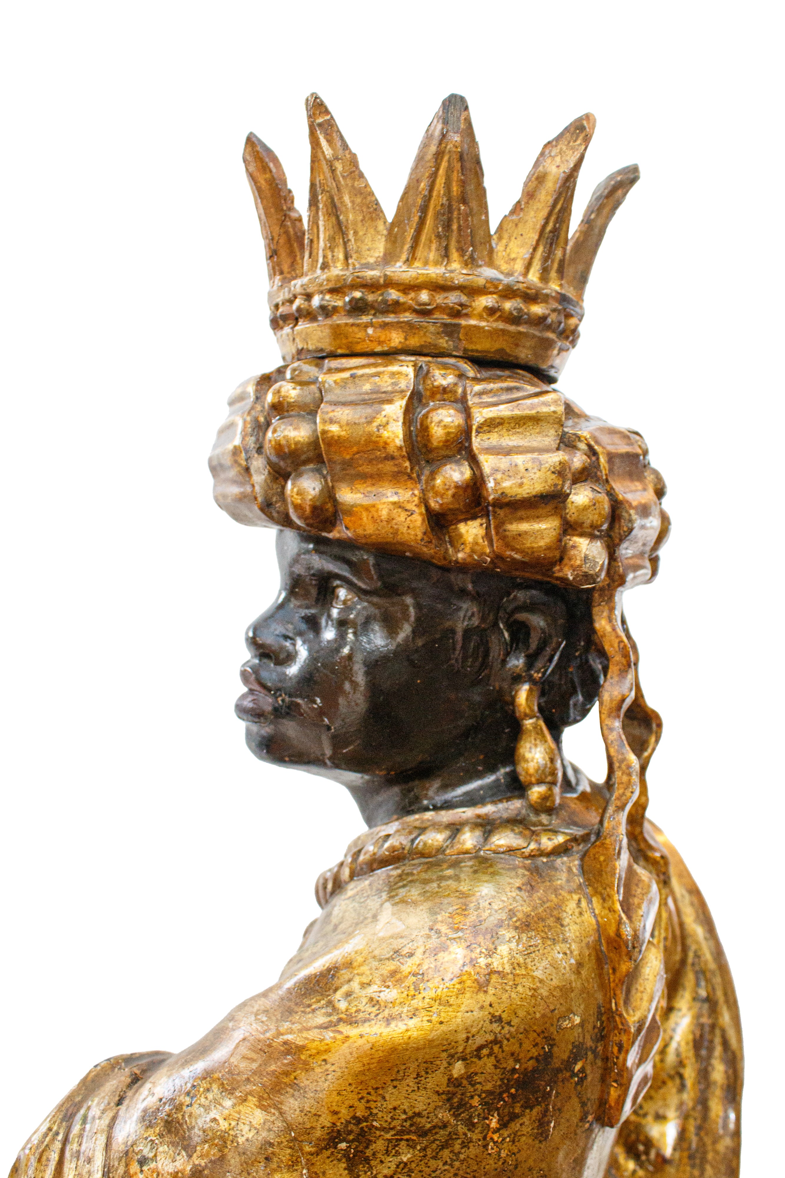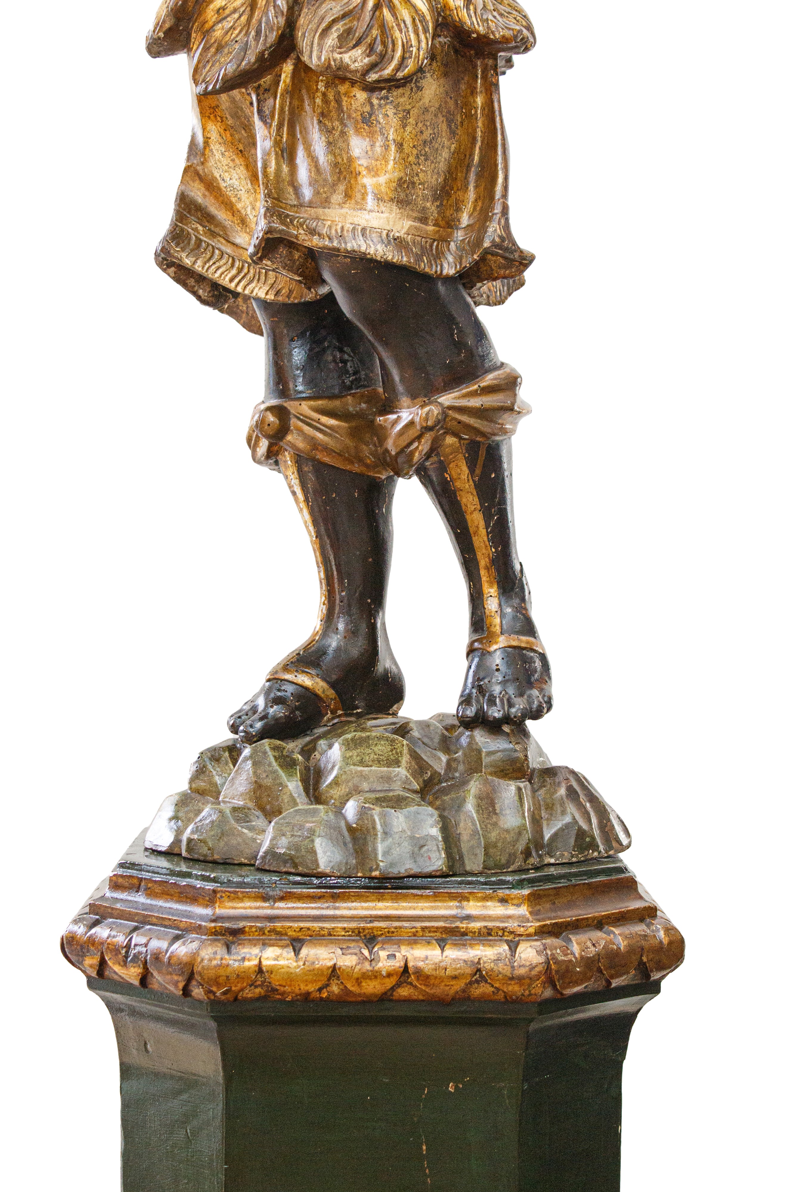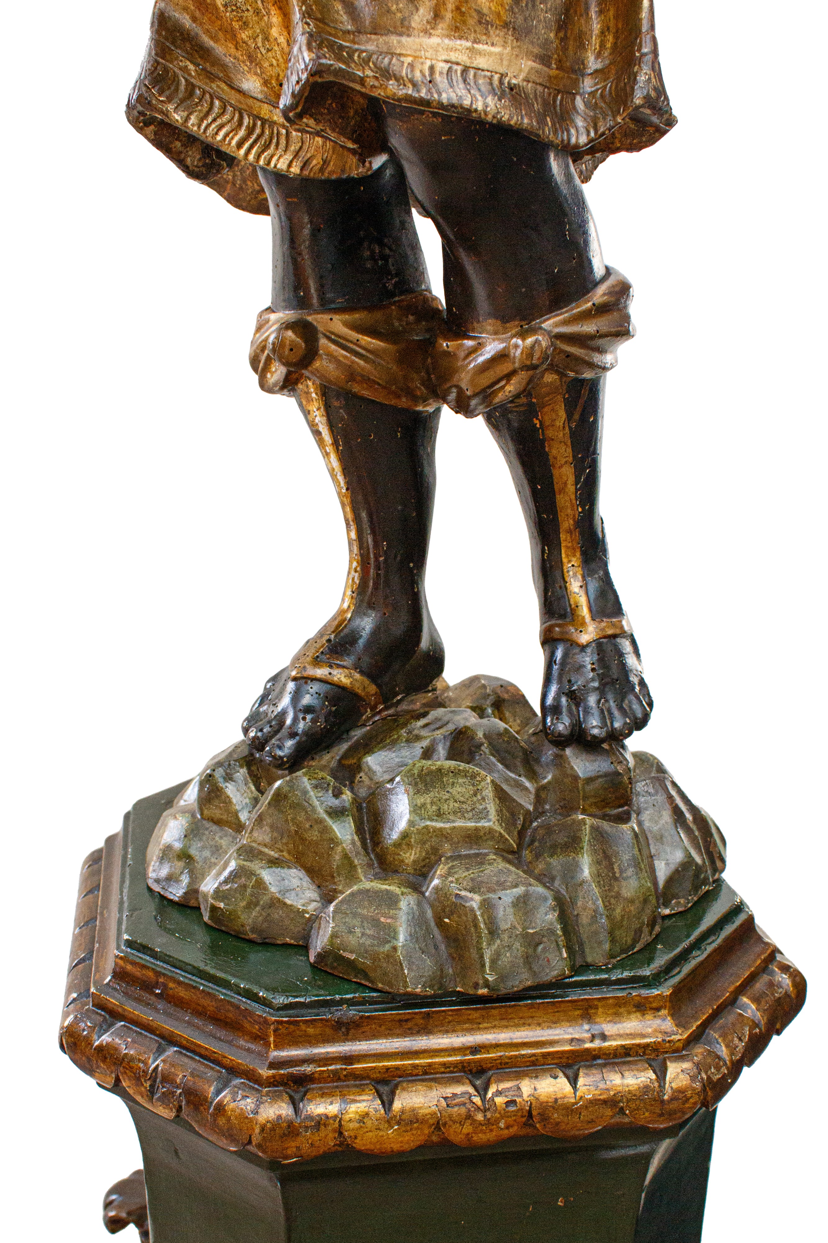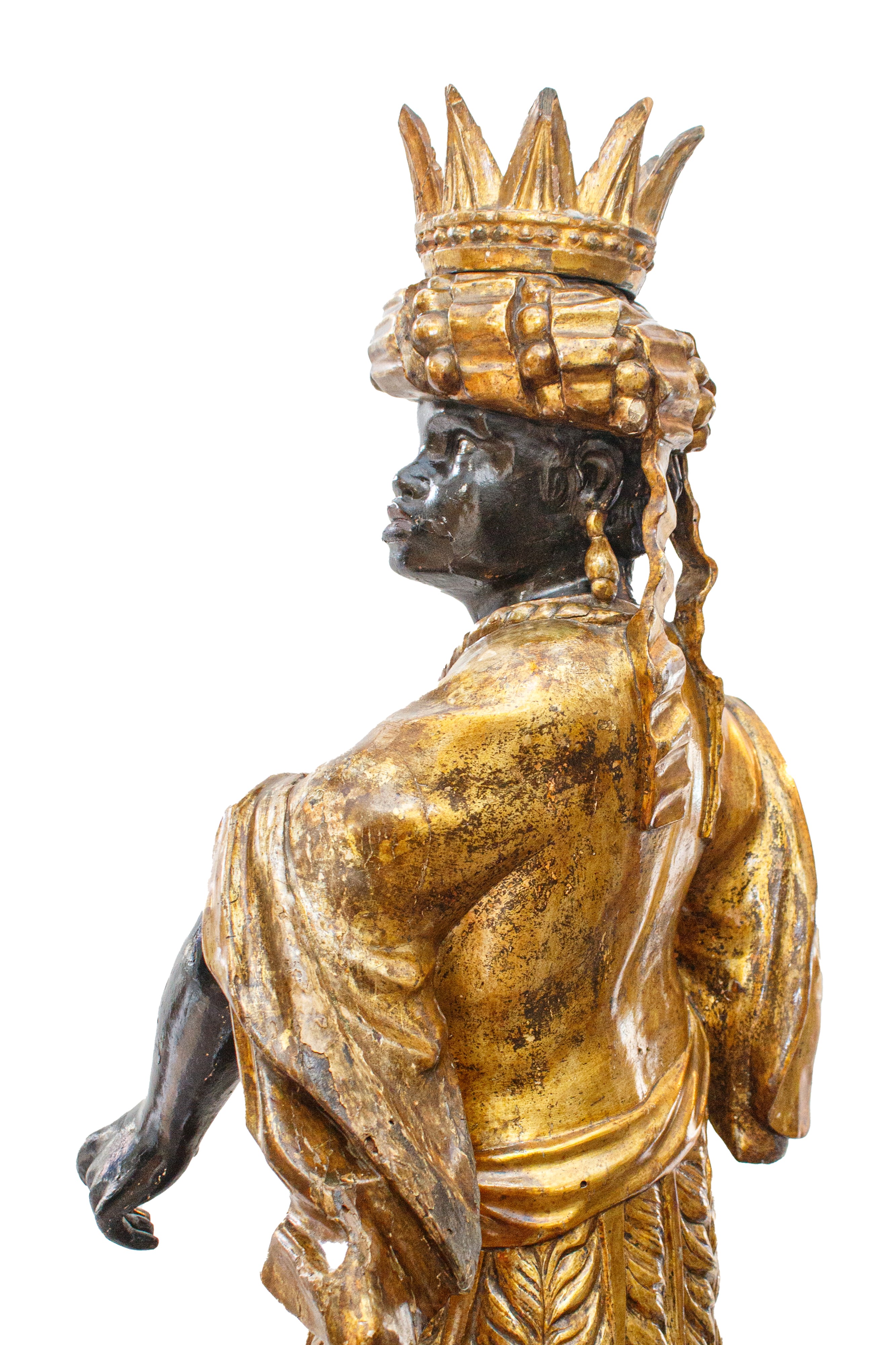 la base a sezione ottagonale, la figura del moro con corona e poggiante su finte rocce.
