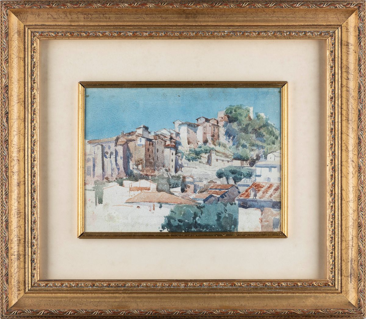 Sul retro cartellino a stampa della mostra Splendori dell'Ottocento ad Arona con riferimenti all'autore e al dipinto.