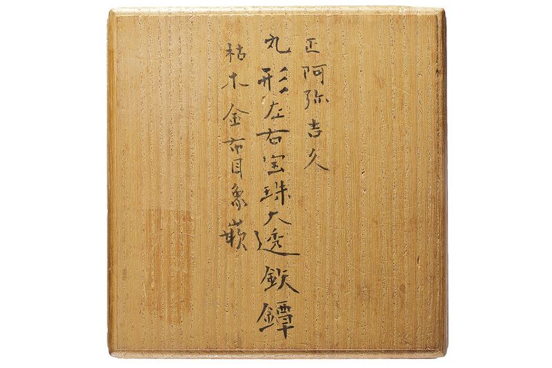 In ferro, maru-gata; decoro a nunome-zogan in oro (con mancanze), sukashi aperti che richiamano probabilmente due foglie stilizzate o una variante di inome-gata; mei, kaku-mimi-koniku. Circa 1700. In kiri-box. Con certificato N.B.T.H.K.