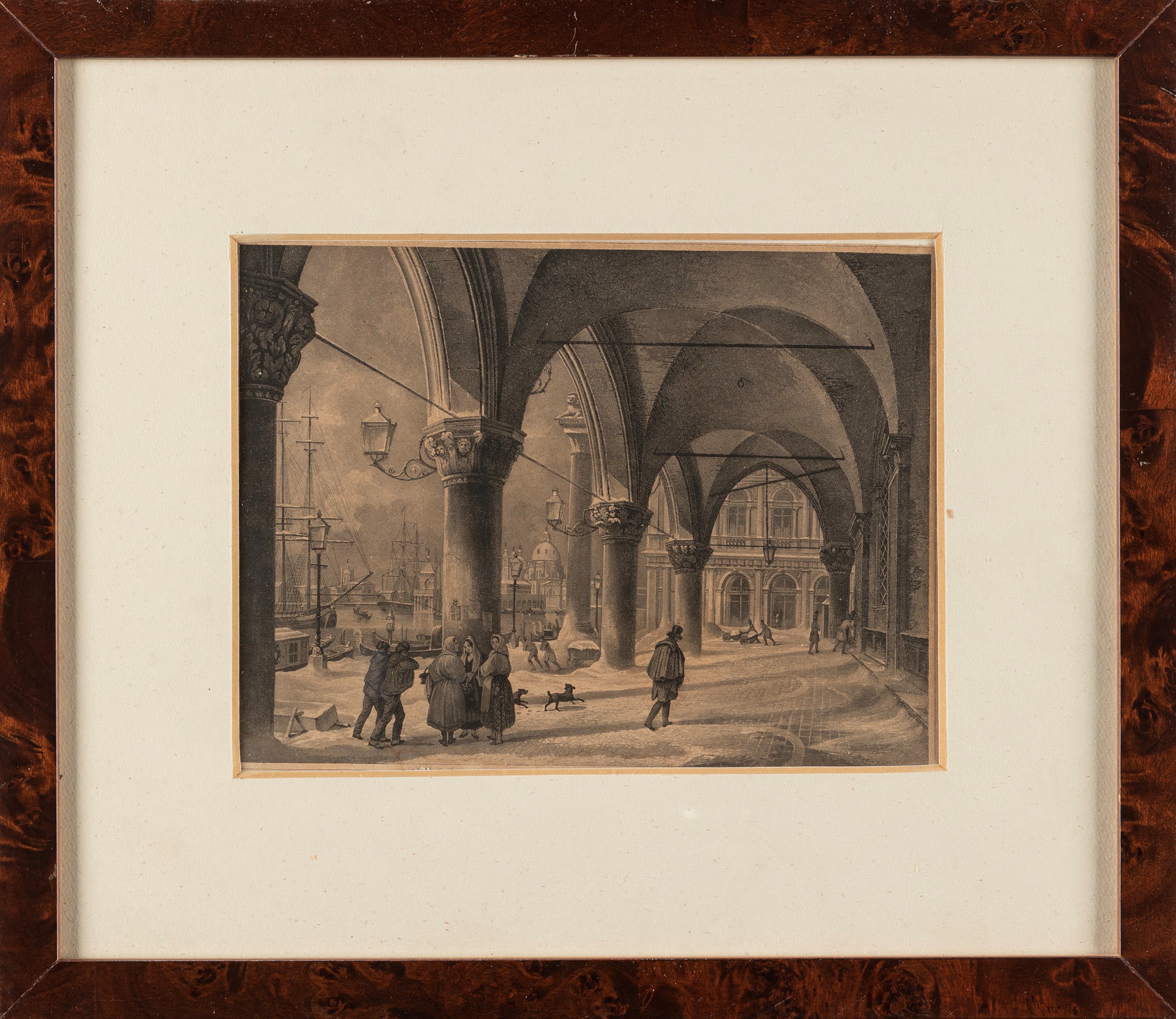 Sul retro, sul foglio, iscrizione: Borsato / Venezia molo con neve