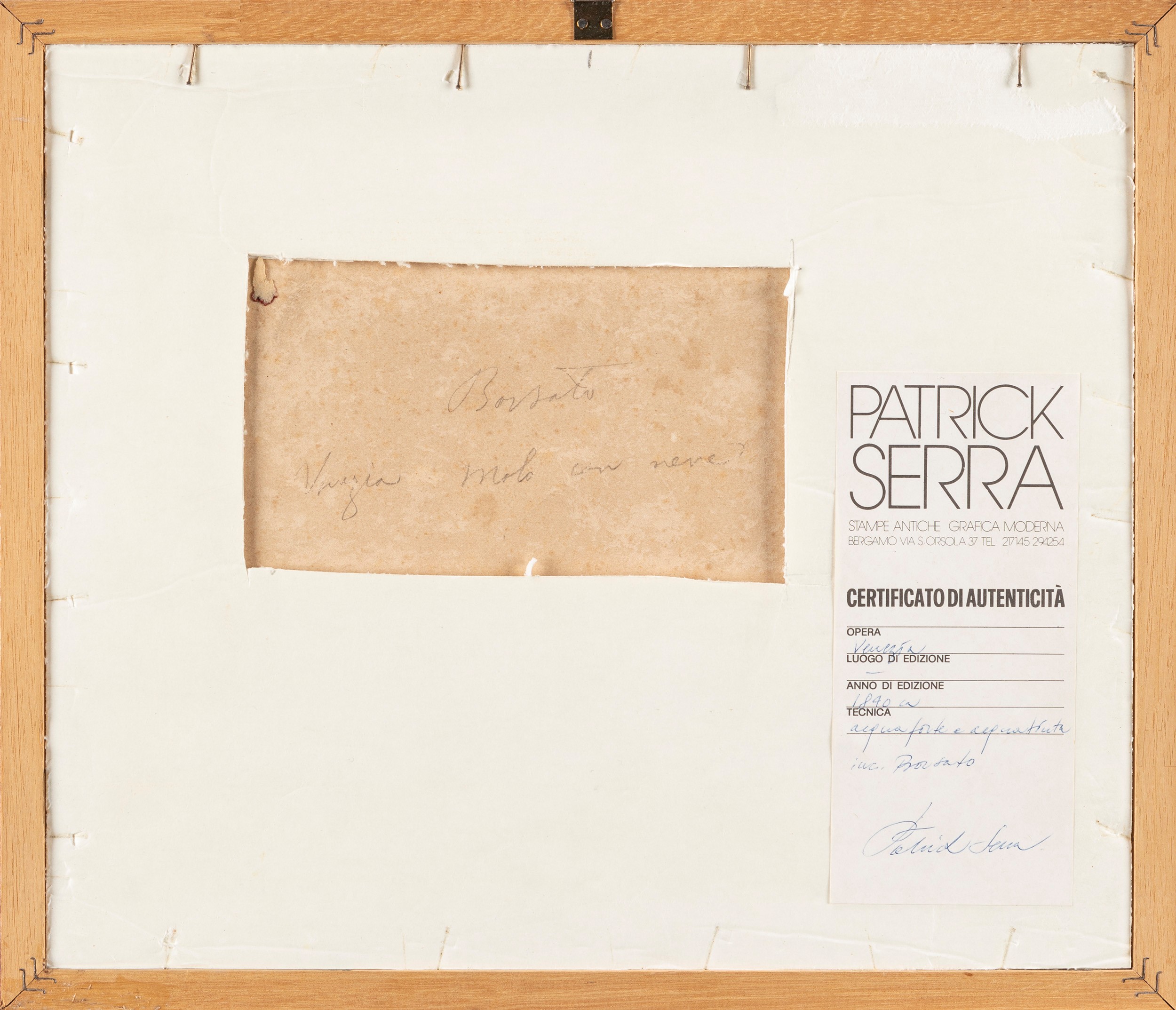 Sul cartoncino di chiusura certificato di autenticità di Patrick Serra.