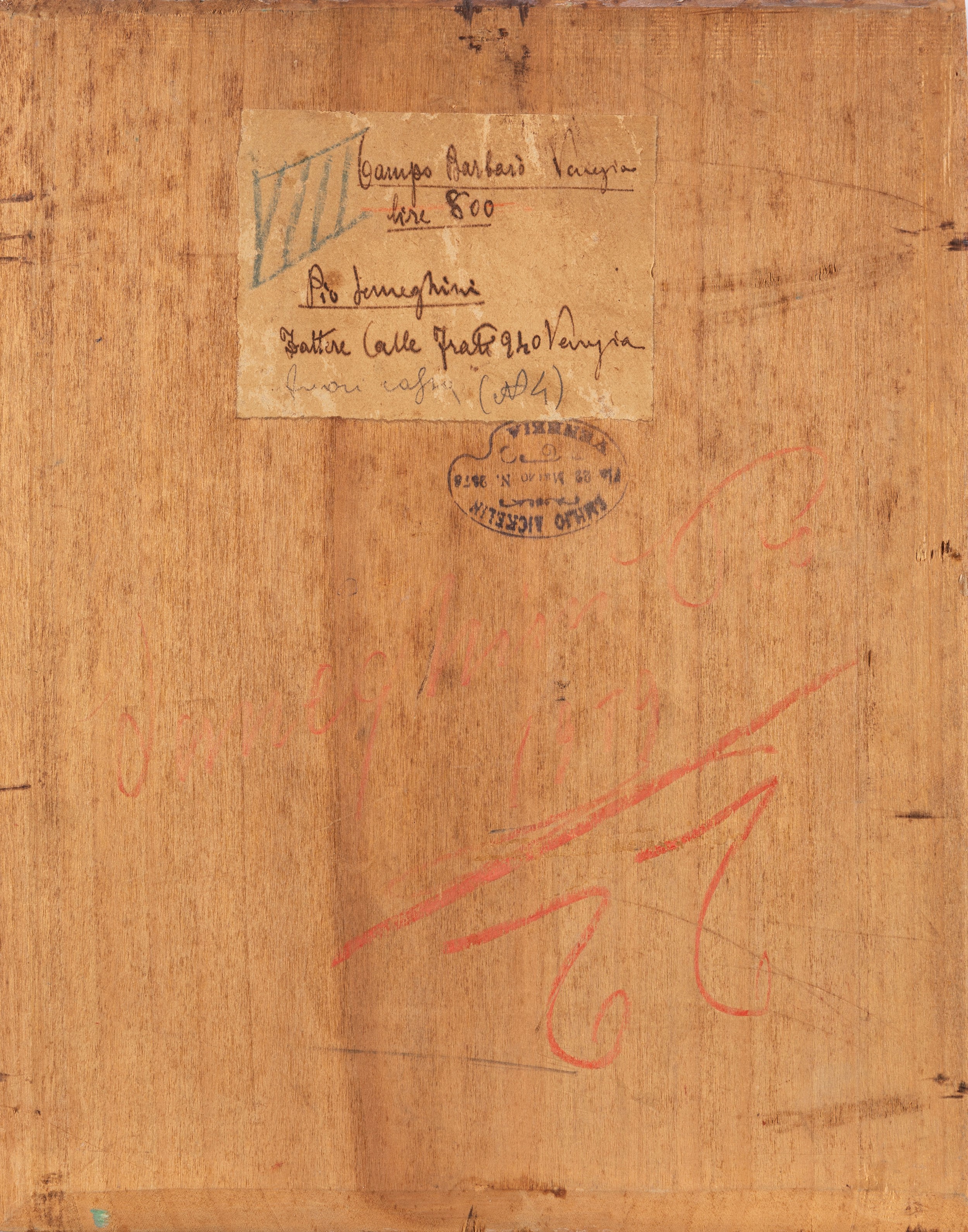 Sul retro, sul supporto, firmato e datato: Semeghini P. / 1919;  e cartiglio del pittore con titolo.