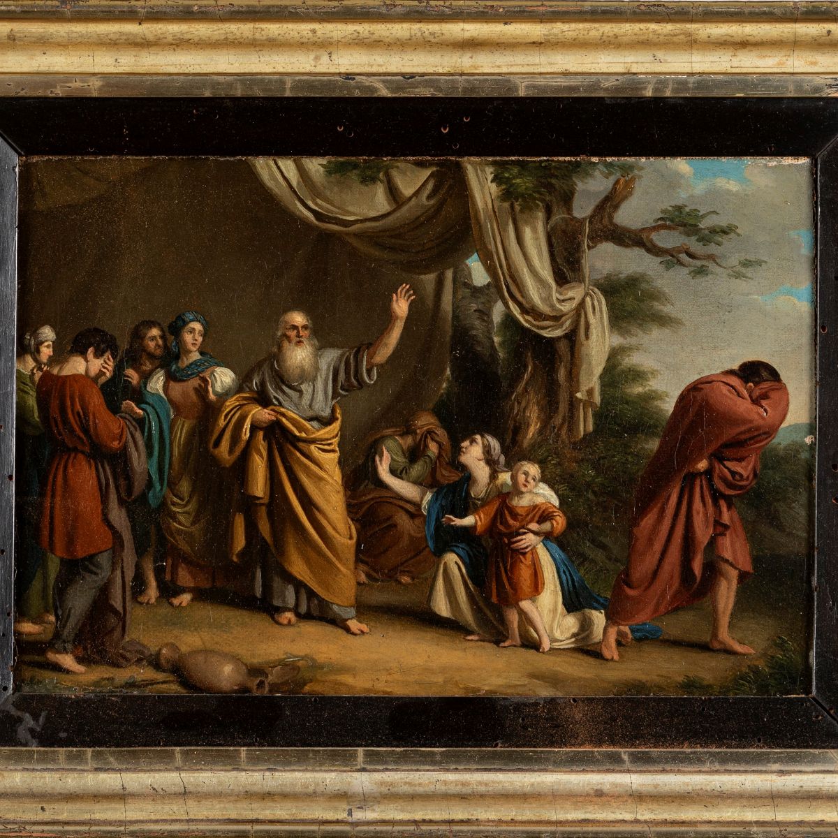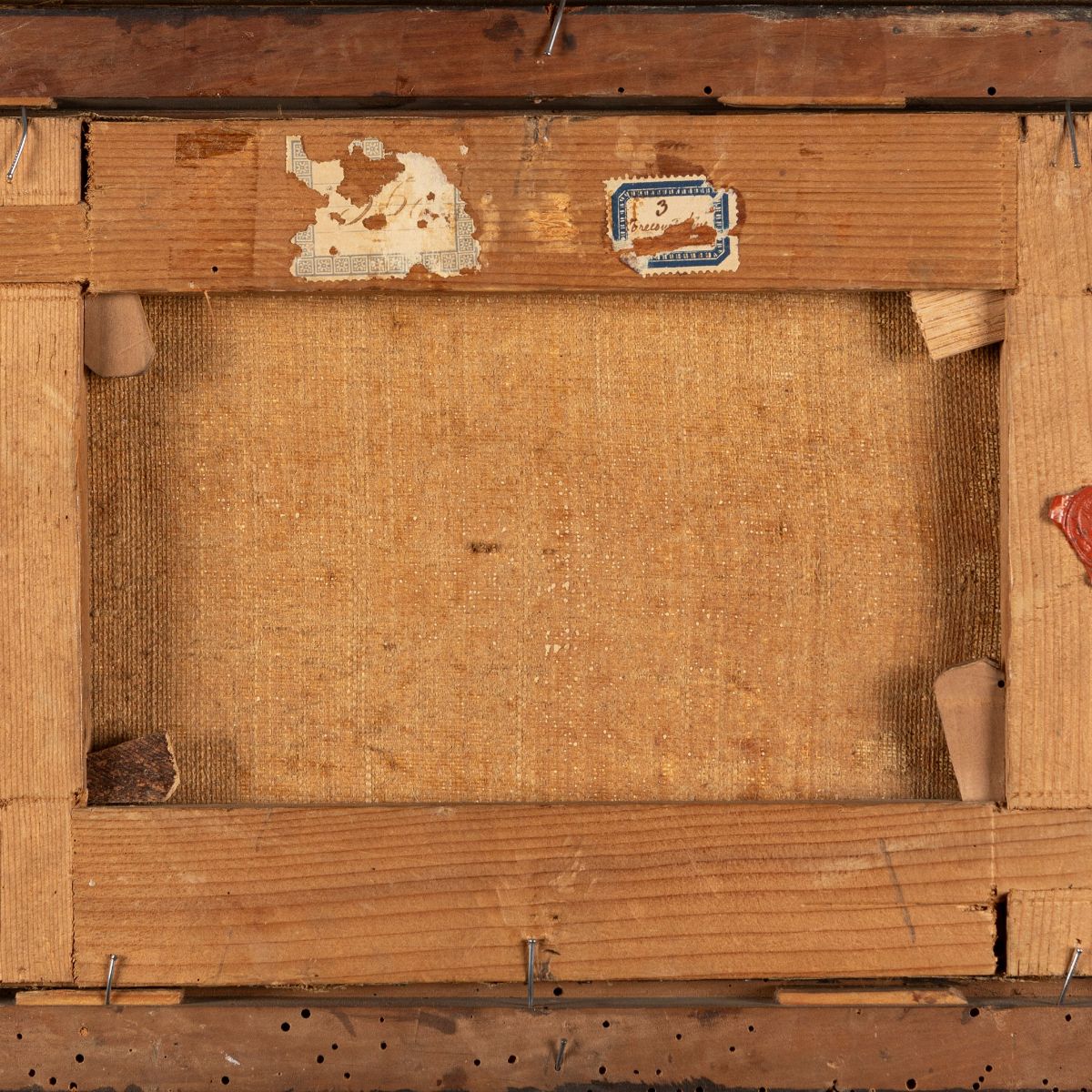 al retro, sul telaio, etichette di esposizione e di inventario e sigillo a ceralacca