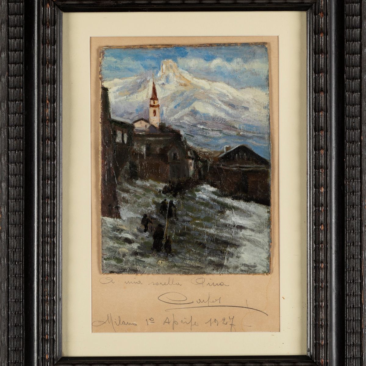 firmato e dedicato in basso sul cartoncino di supporto: A mia sorella Pina / Cargnel / Milano 1 aprile 1927
