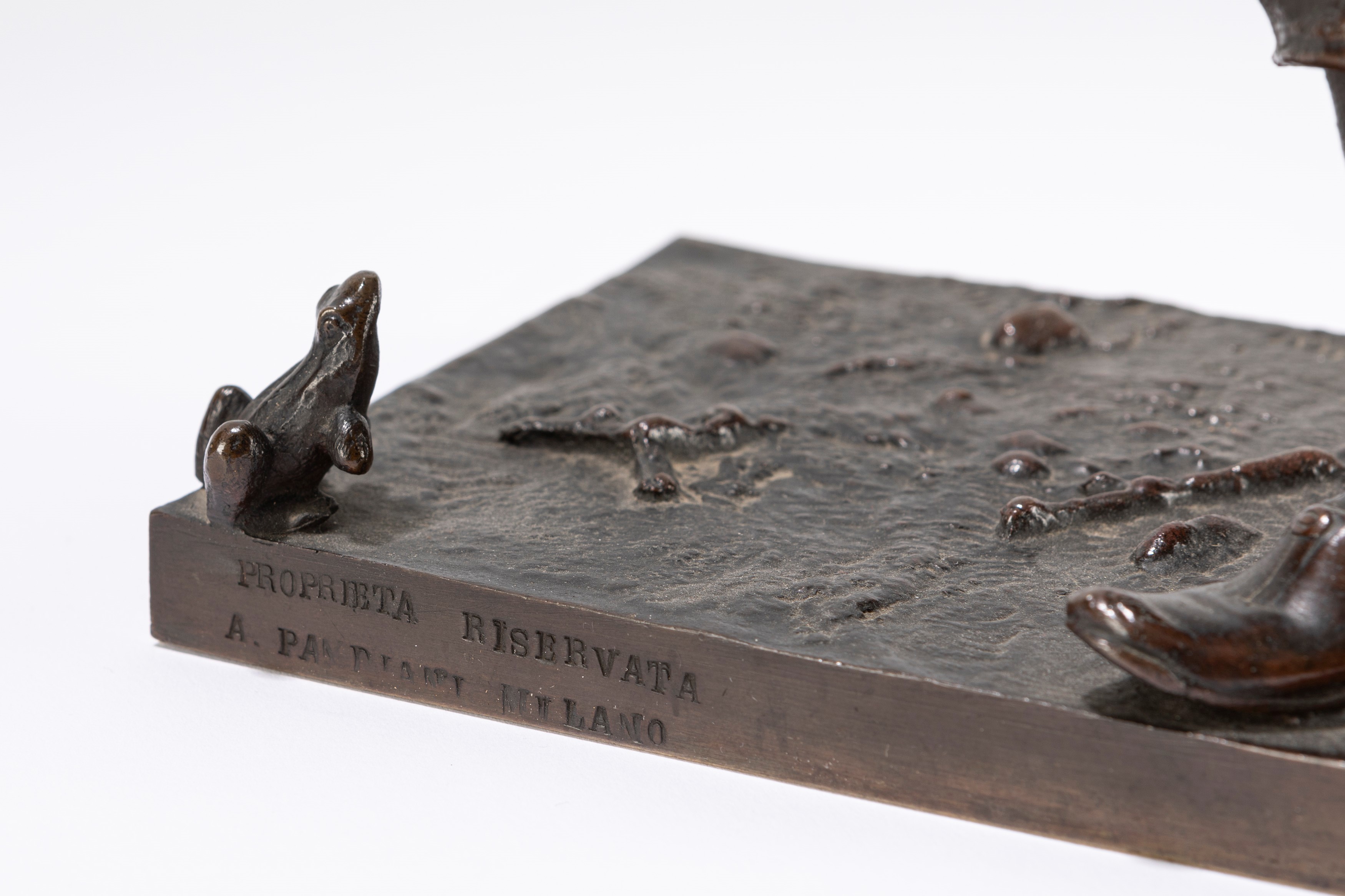In questo caso, particolarmente riuscito, è da parte di Antonio aver trasposto in termini qualitativi ma anche stilisticamente un dipinto in bronzo; non era una novità, dato che lo scultore preraffaellita Giovanni Battista Amendola traduceva i dipinti di Leighton nella triplice dimensione plastica, ma è interessante che Pandiani dal gusto fortemente eclettico si sia rivolto a un dipinto così eccentrico rispetto al contesto dell'epoca.