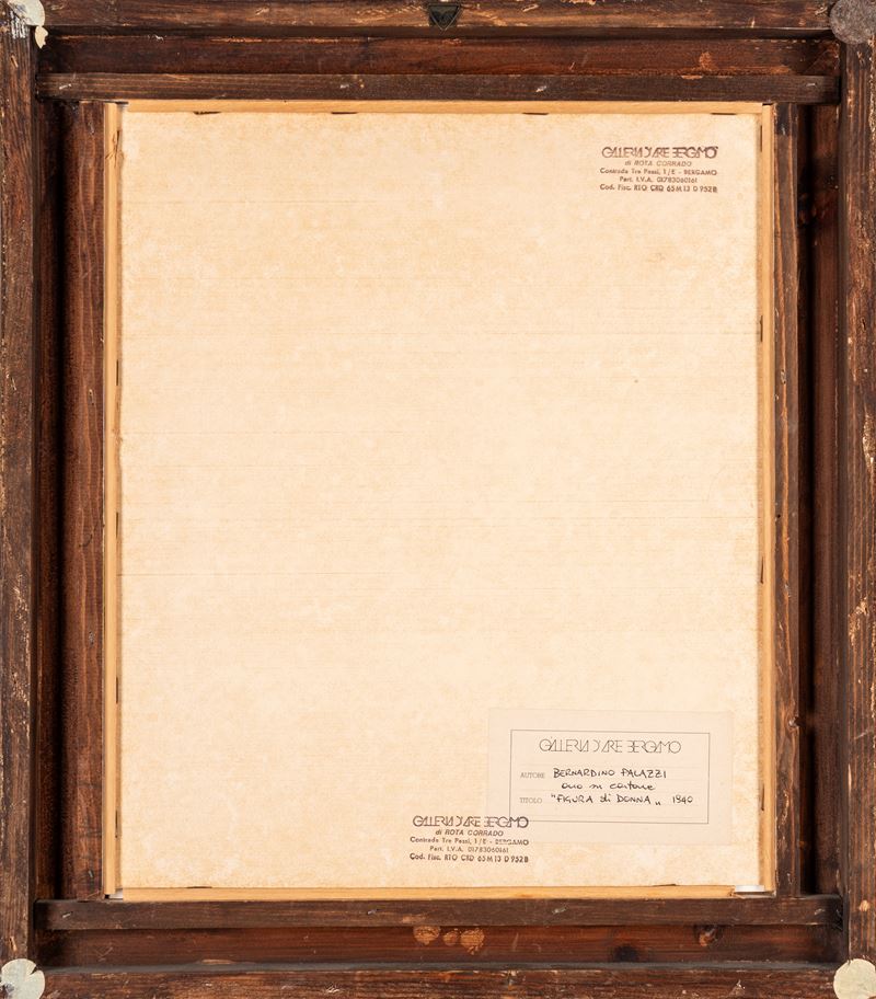 al retro, sul cartoncino di chiusura, timbri ed etichetta della Galleria d'Arte, Bergamo