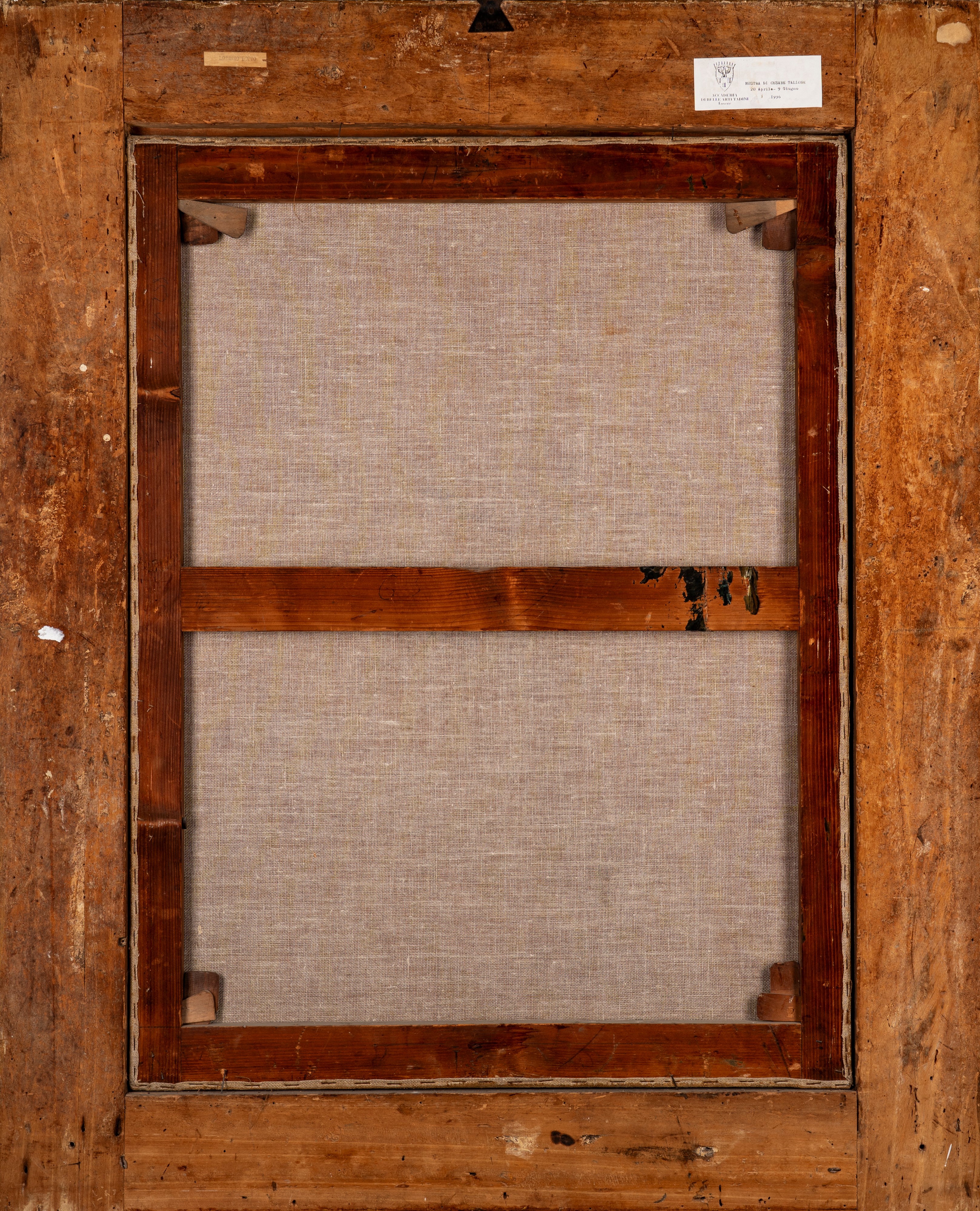 al retro, sulla cornice, etichetta della Mostra di Cesare Tallone, 20 aprile - 9 giugno, Accademia di Belle Arti Tadini, Lovere, 1996