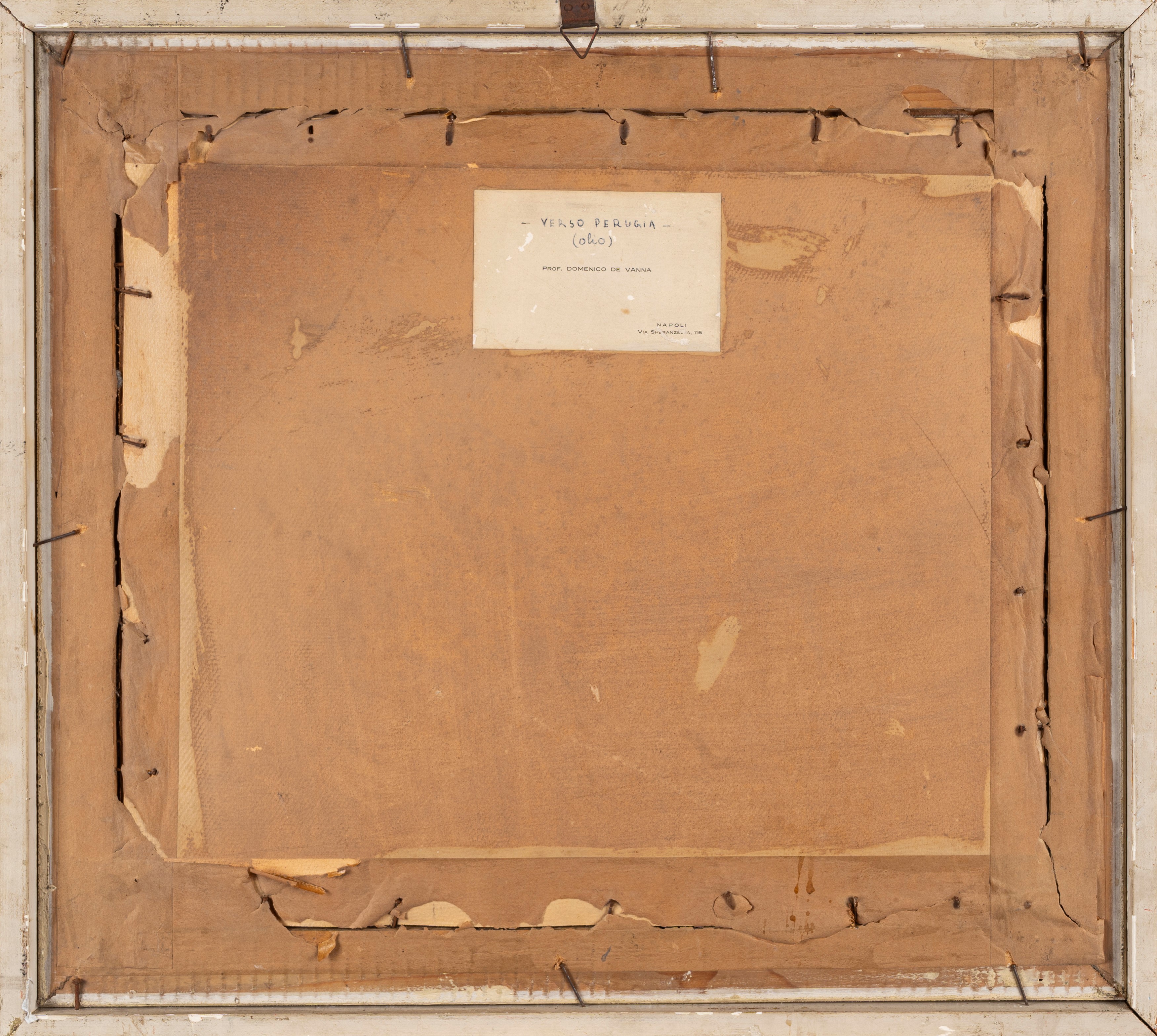 al retro, sul cartone di supporto, cartellino del pittore con riferimenti al dipinto