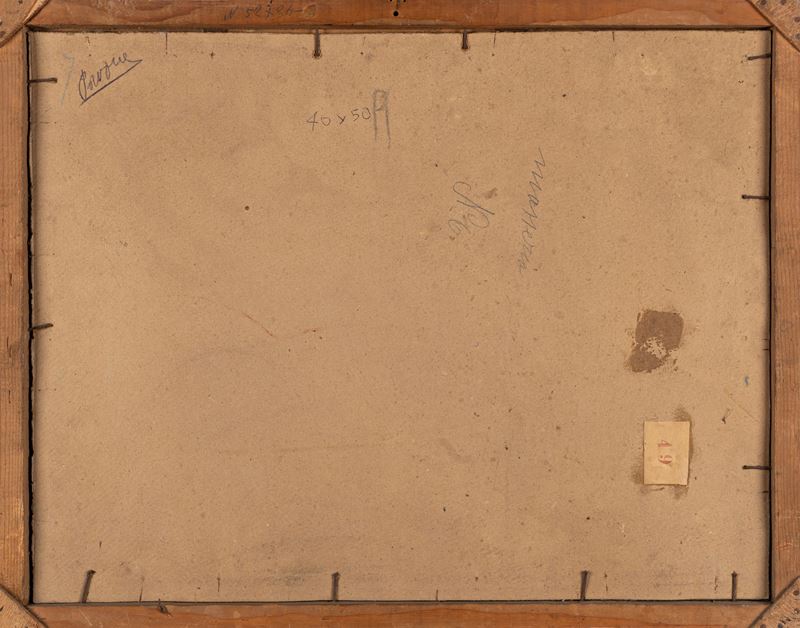 al retro, sul cartone di chiusura, etichetta dattiloscritta con numero di riferimento 49