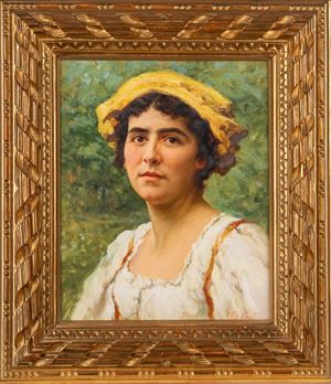 Ritratto di donna con copricapo giallo