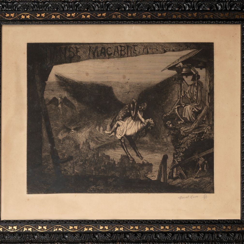 intitolato, firmato e datato in alto al centro: DANSE MACABRE Marcel Roux 1904 e firma e tiratura a matita in basso a destra: Marcel Roux 21/50