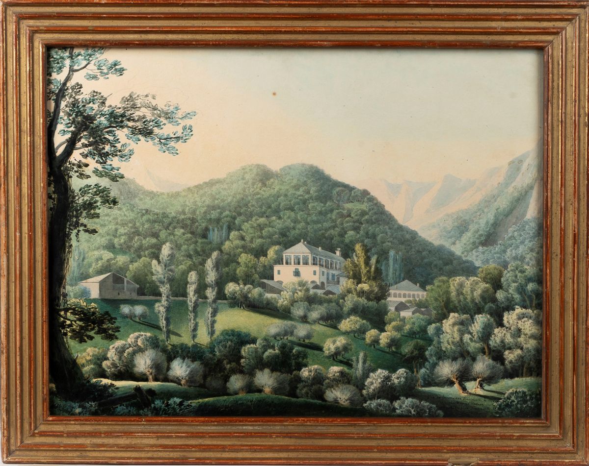 intitolato, firmato e datato in basso a destra: Vue de la maison Francesetti a Mezenil / dessinèe d'apres nature. / Per Albertina Francesetti 1811