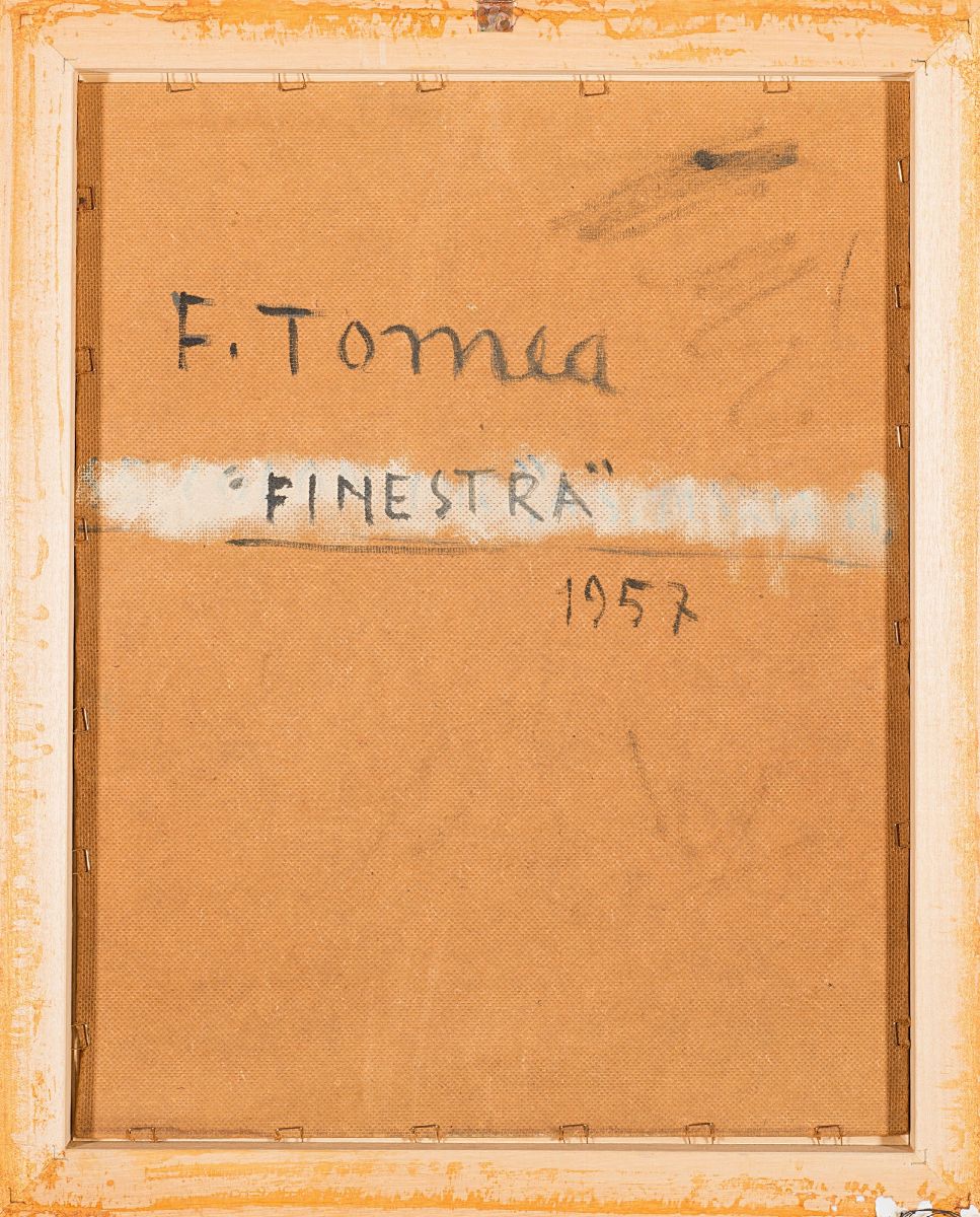Firmato, titolato e datato al verso: F. Tomea "FINESTRA" 1957